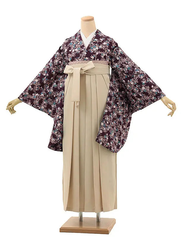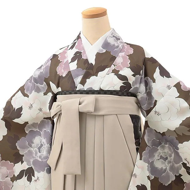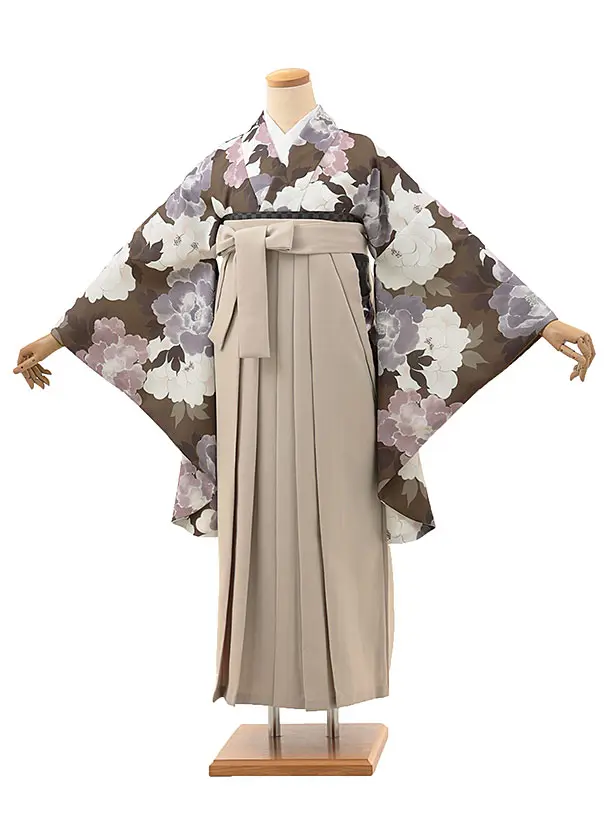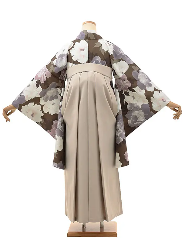 卒業式袴レンタルV108 ブラウン 牡丹×ベージュ
