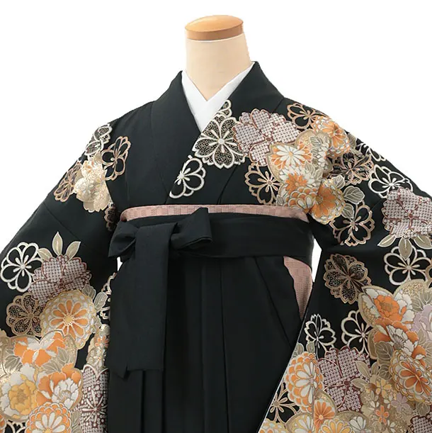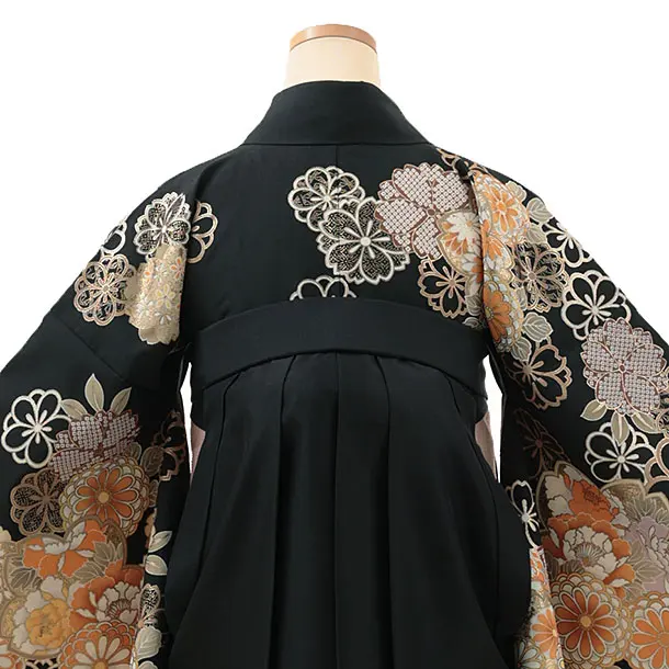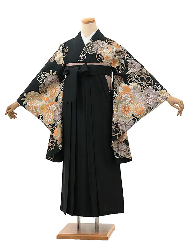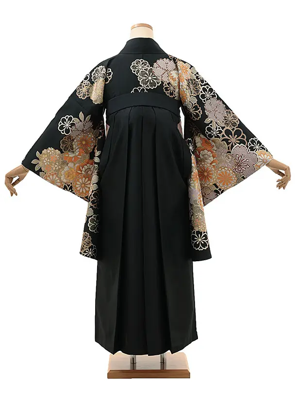卒業式袴レンタルV115 黒地 花づくし×黒