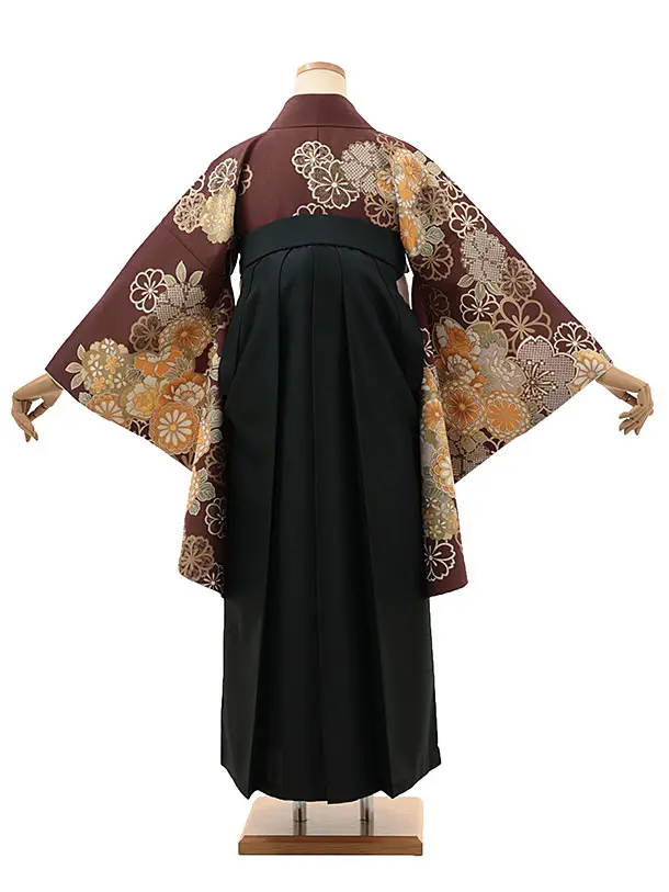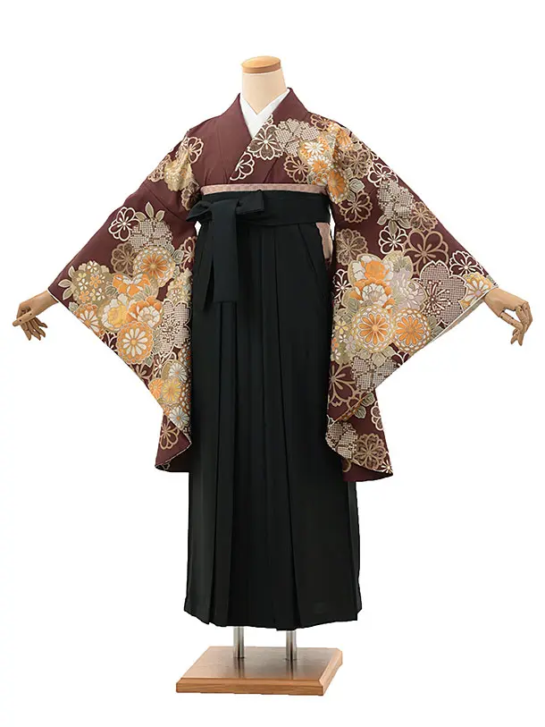 卒業式袴レンタルV117 ブラウン 花づくし×黒