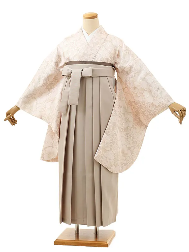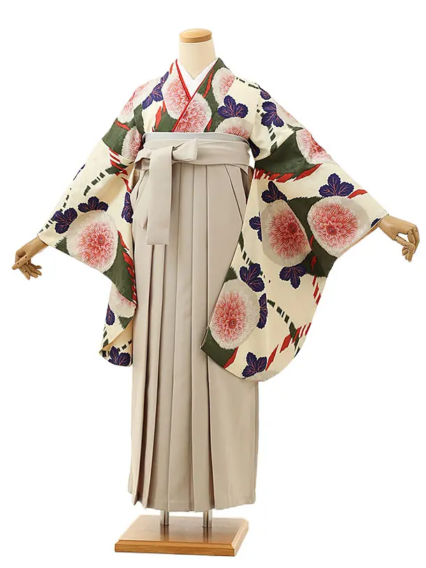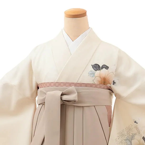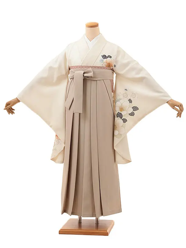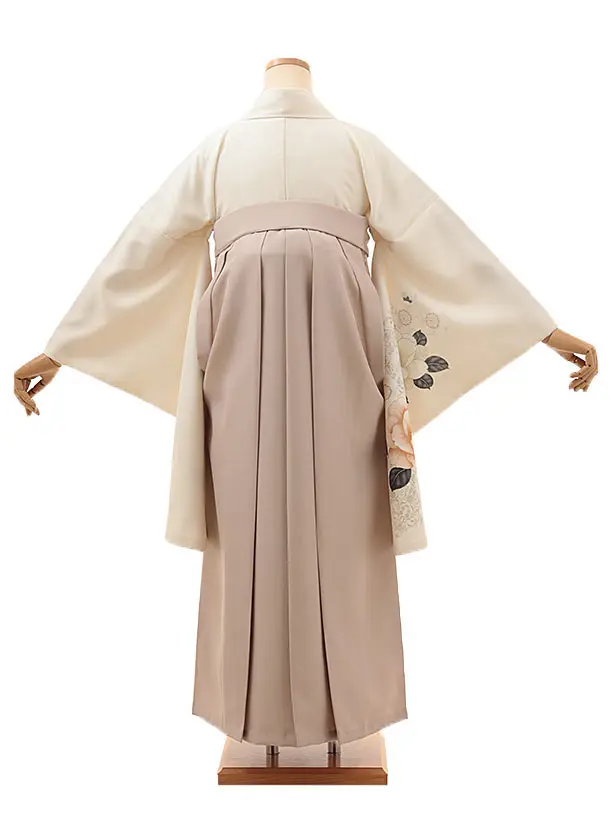 卒業式袴レンタルV120 クリーム 椿×ベージュ