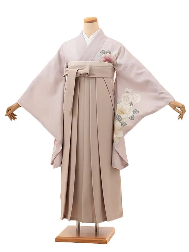 卒業式袴レンタルV122 薄パープルピンク 椿×ベージュ