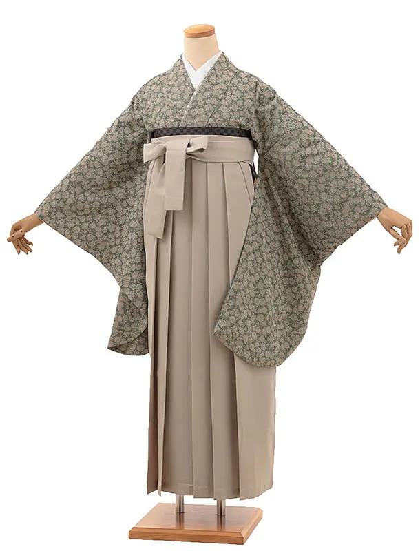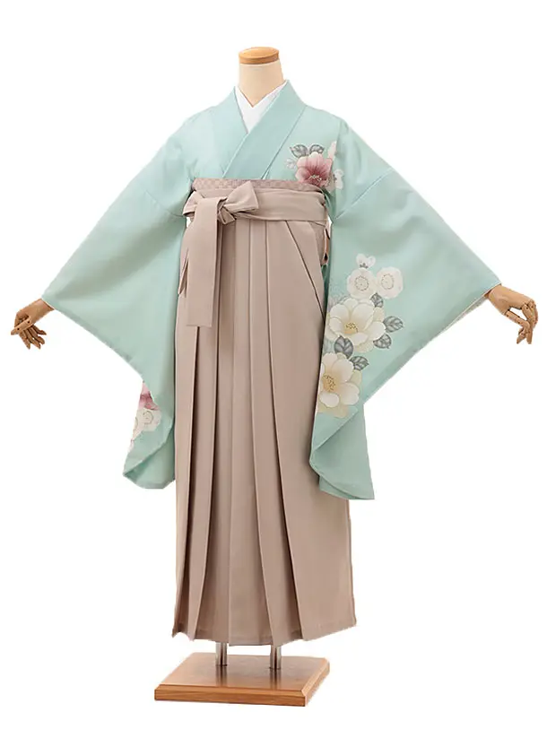 卒業式袴レンタルV123 ミント 椿×ベージュ