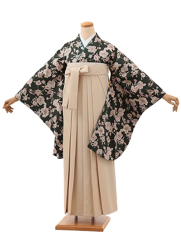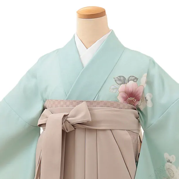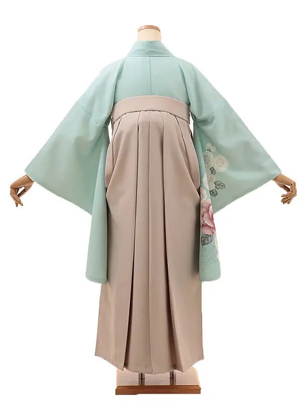 卒業式袴レンタルV124 ミント 椿×ベージュ