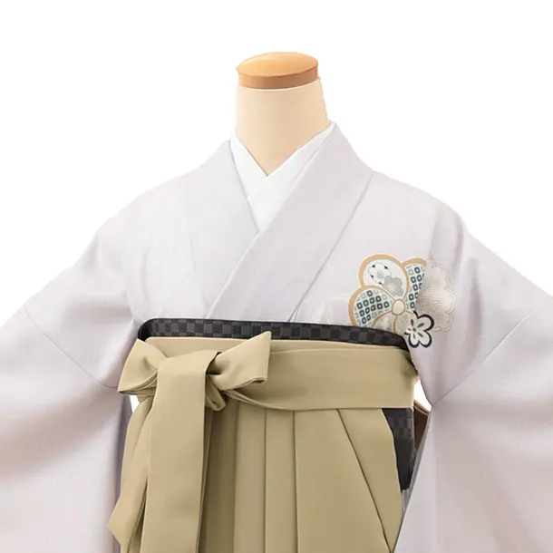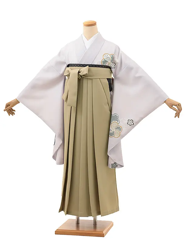 卒業式袴レンタルV125 薄ラベンダー ねじり梅×キャメルベージュ