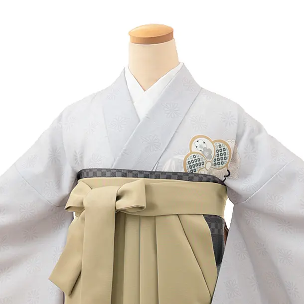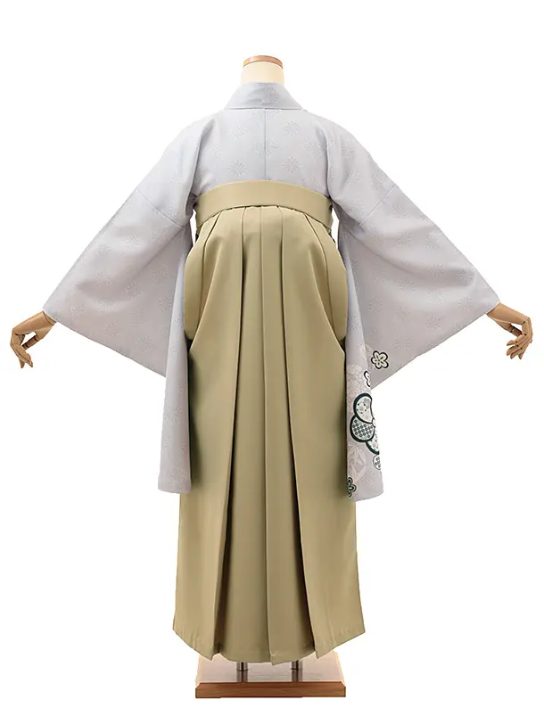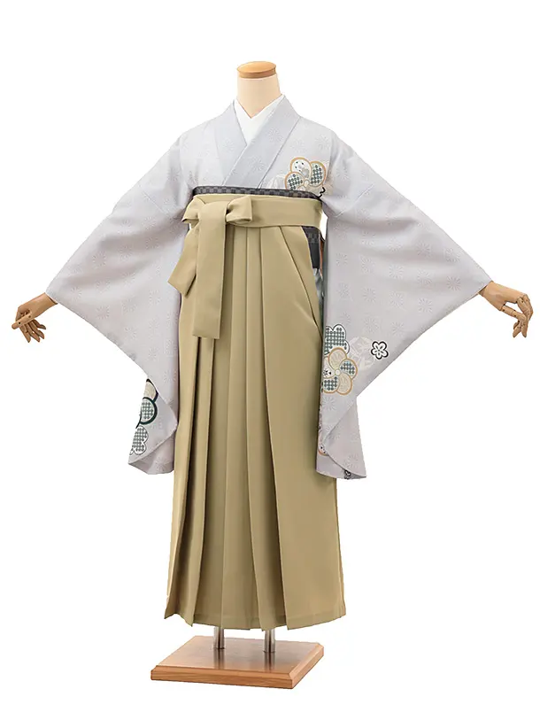 卒業式袴レンタルV126 薄グレー ねじり梅×キャメルベージュ