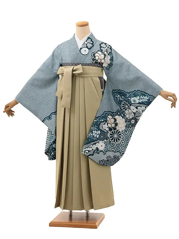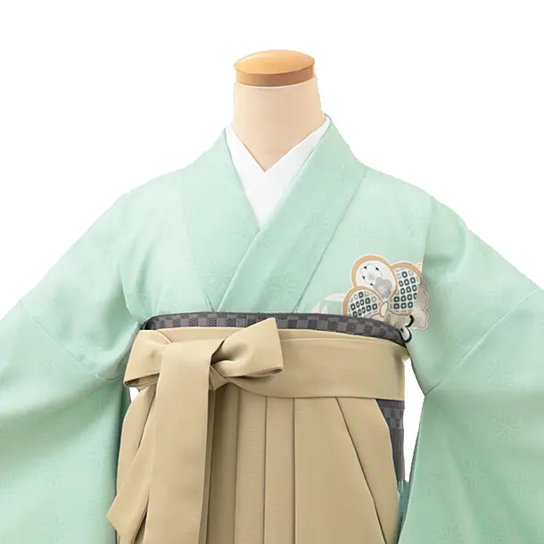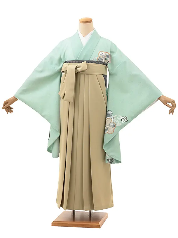 卒業式袴レンタルV129 ミント ねじり梅×キャメルベージュ