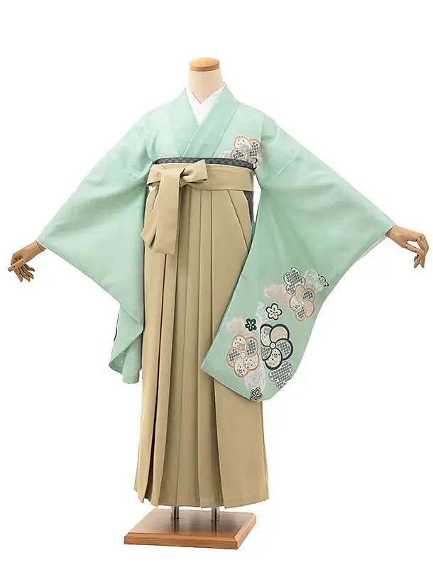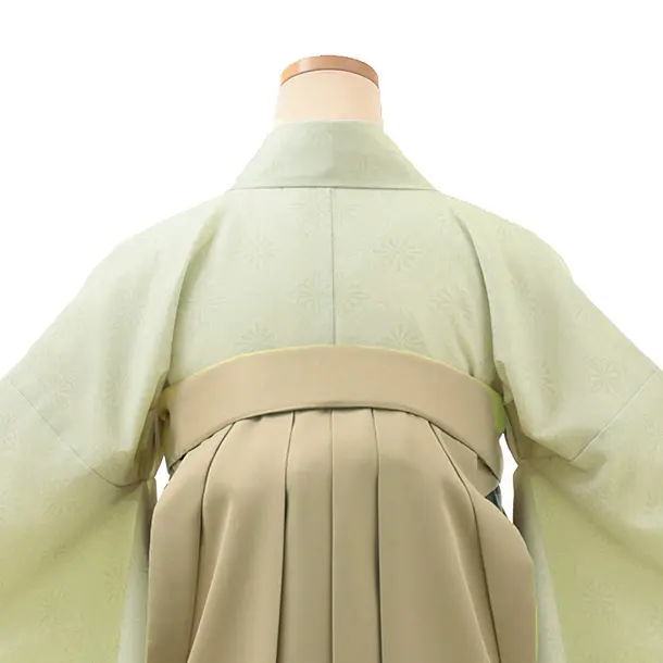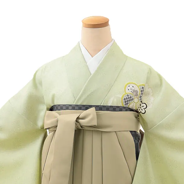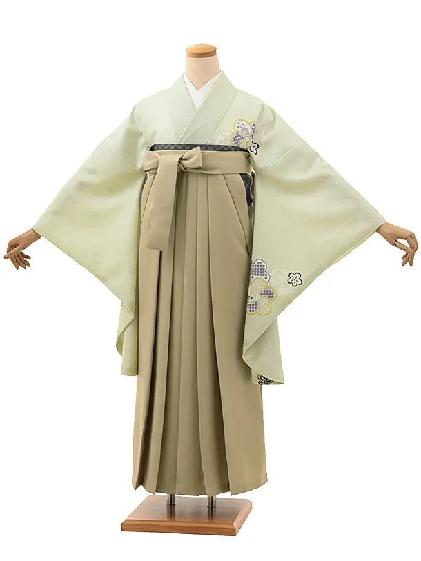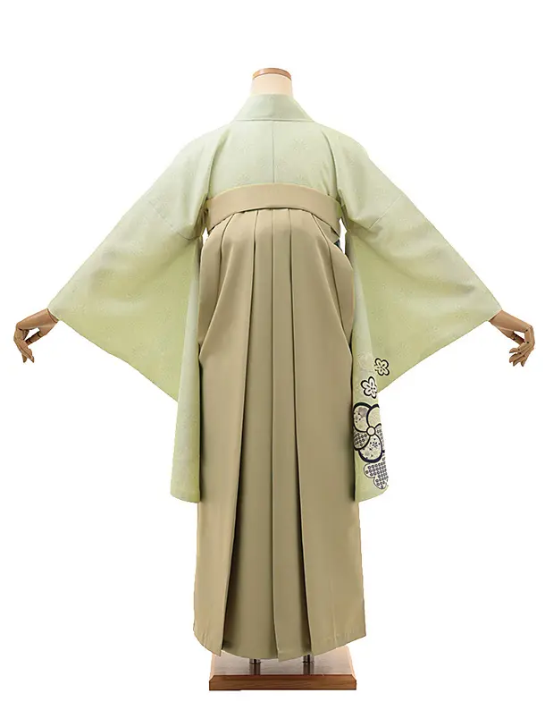 卒業式袴レンタルV130 ヒワ色 ねじり梅×キャメルベージュ