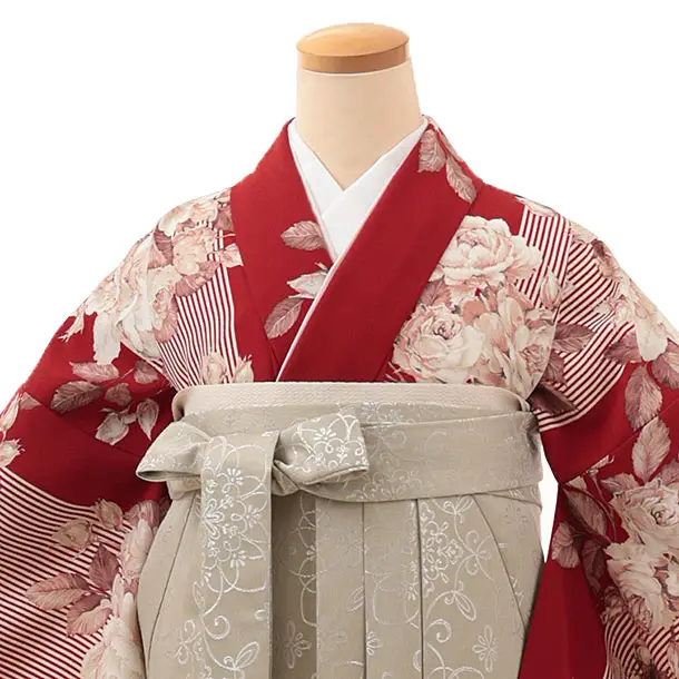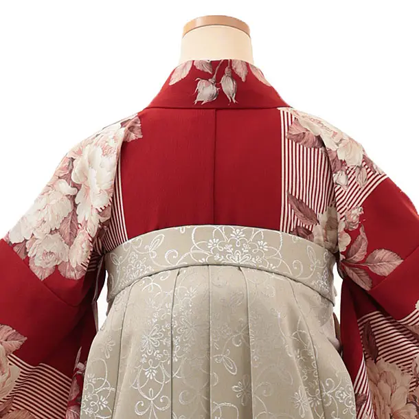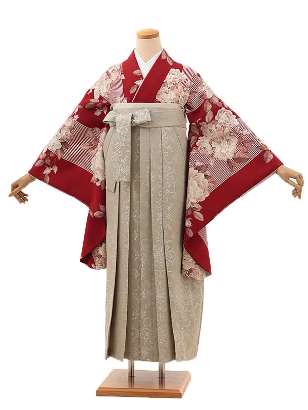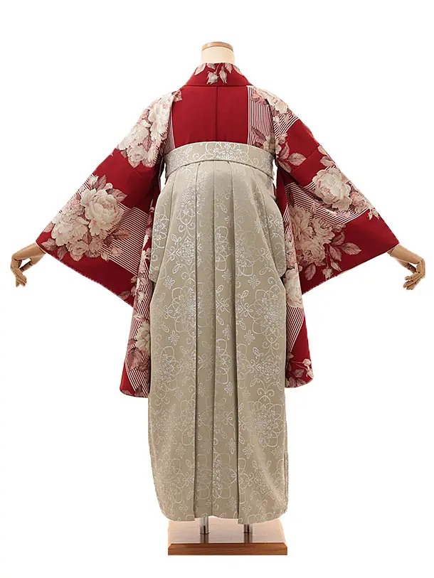 卒業式袴レンタルV148 赤地バラ×ベージュ