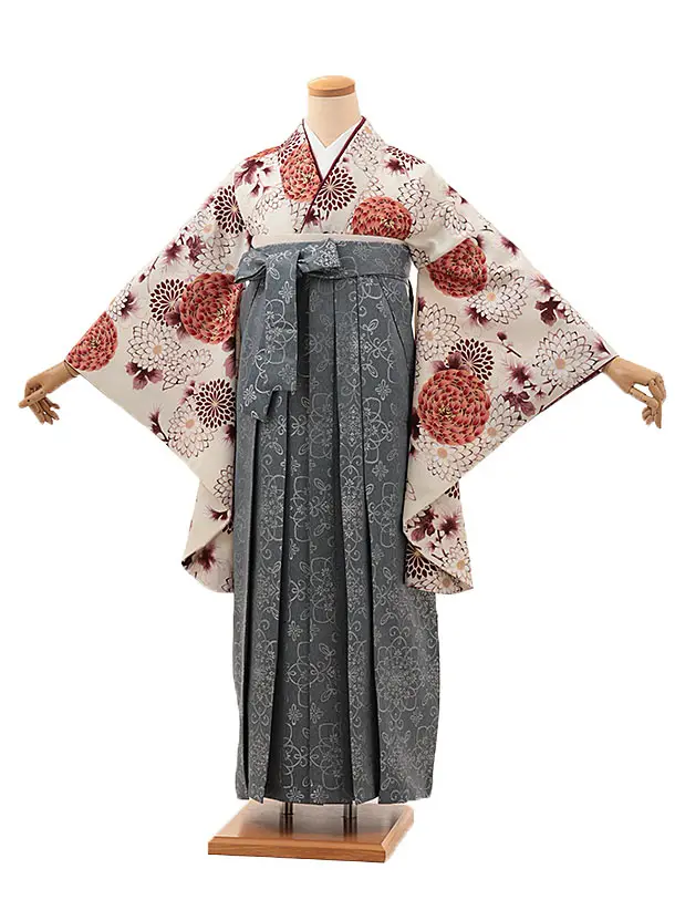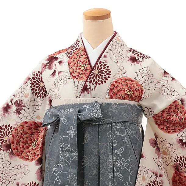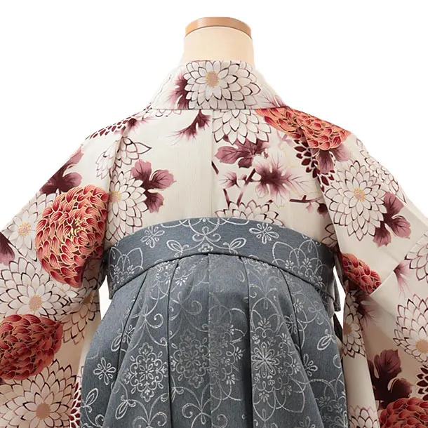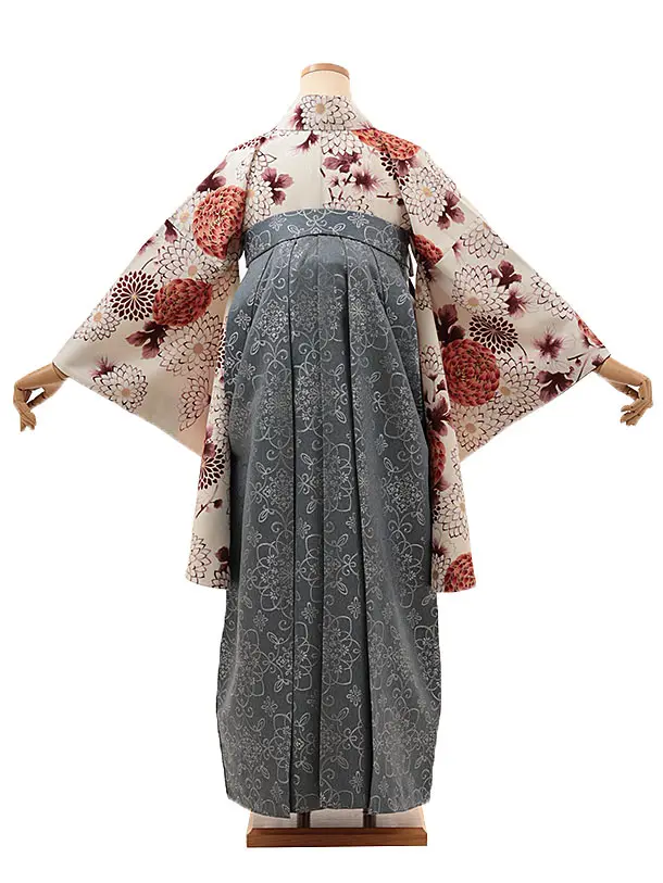 卒業式袴レンタルV151 アイボリー菊×ブルーグレー