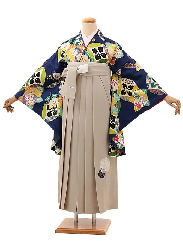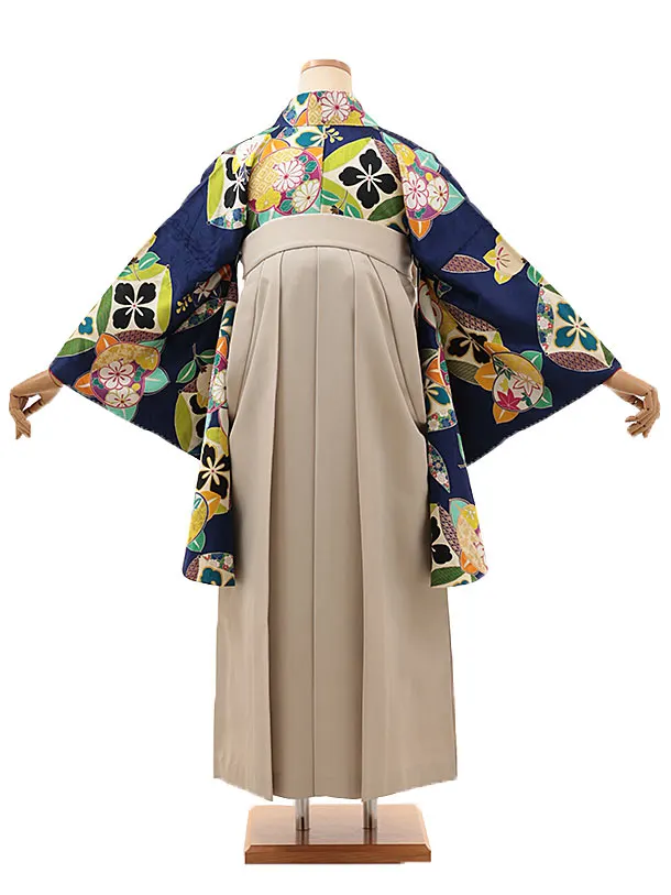 卒業式袴レンタルV153【正絹】ブルー 橘×ベージュ