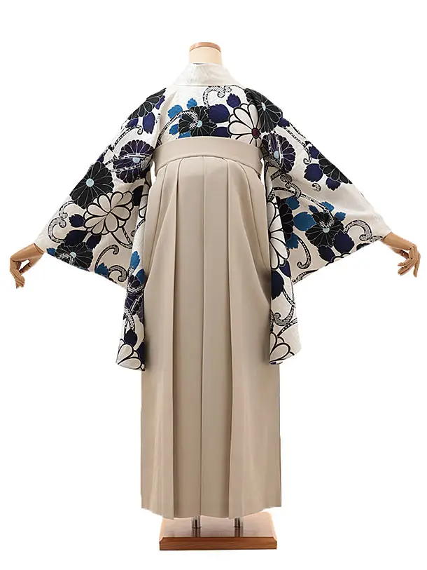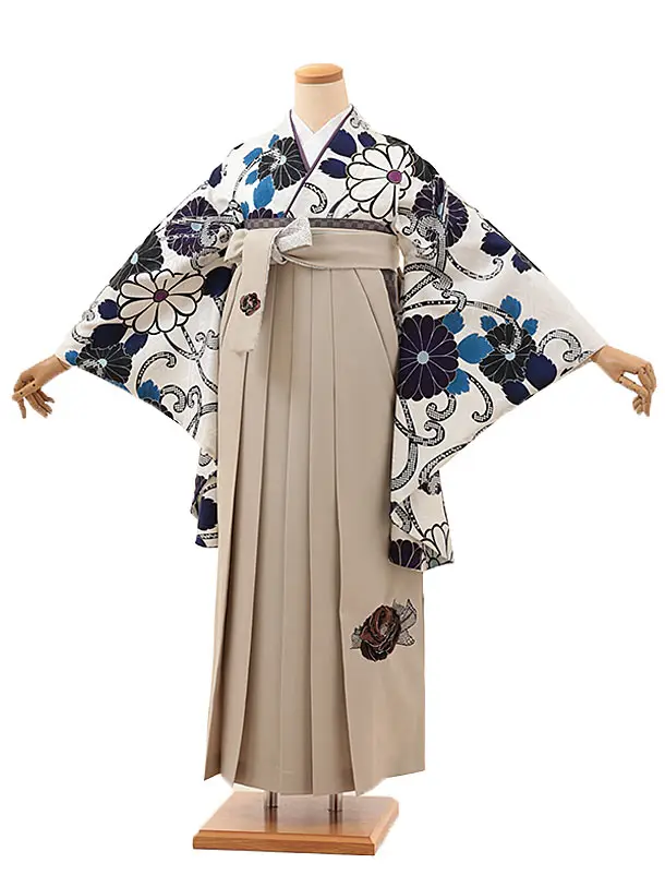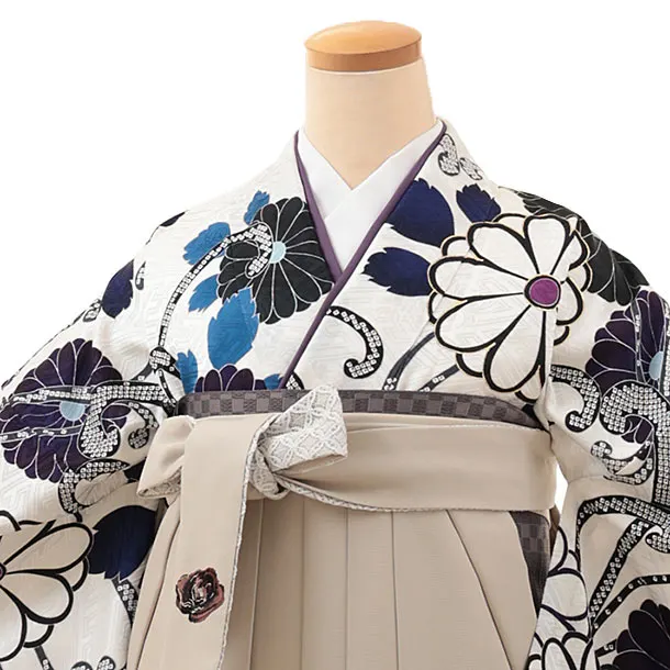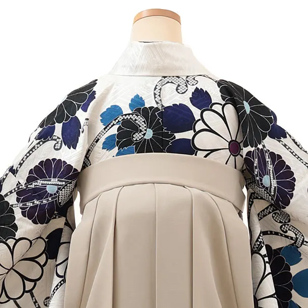卒業式袴レンタルV156【正絹】白地 菊×ベージュ