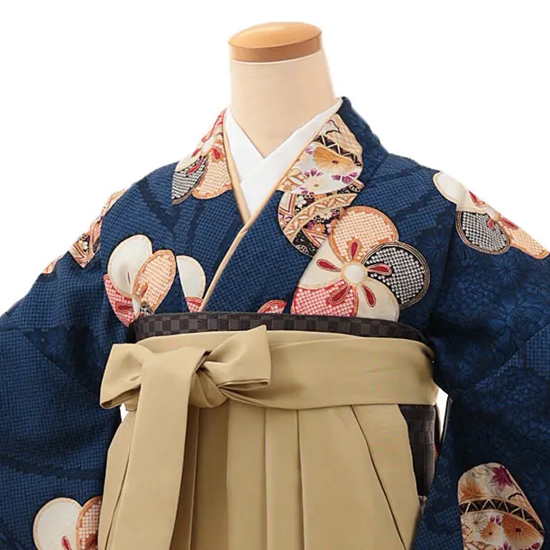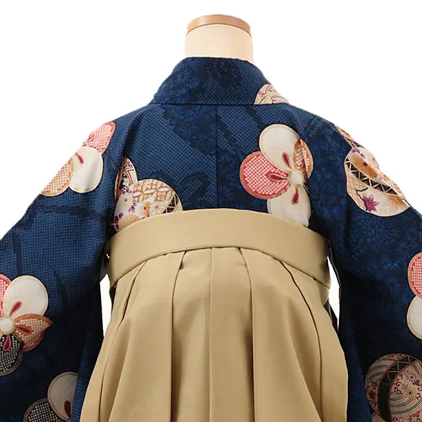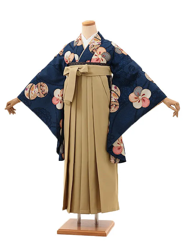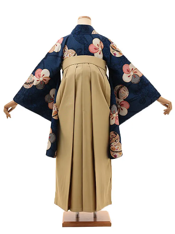 卒業式袴レンタルV160 紺地 まり梅×キャメルベージュ