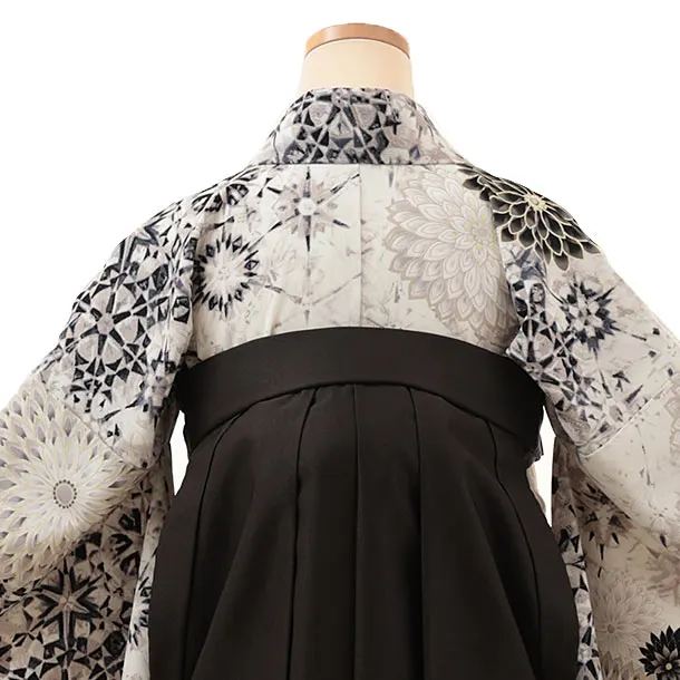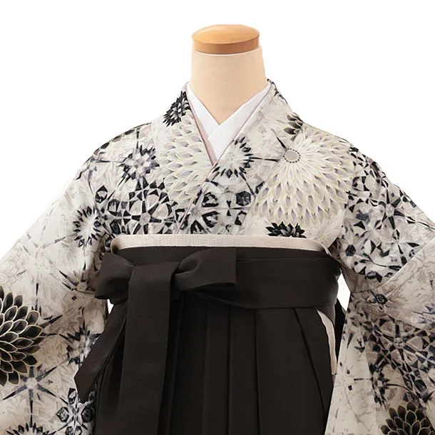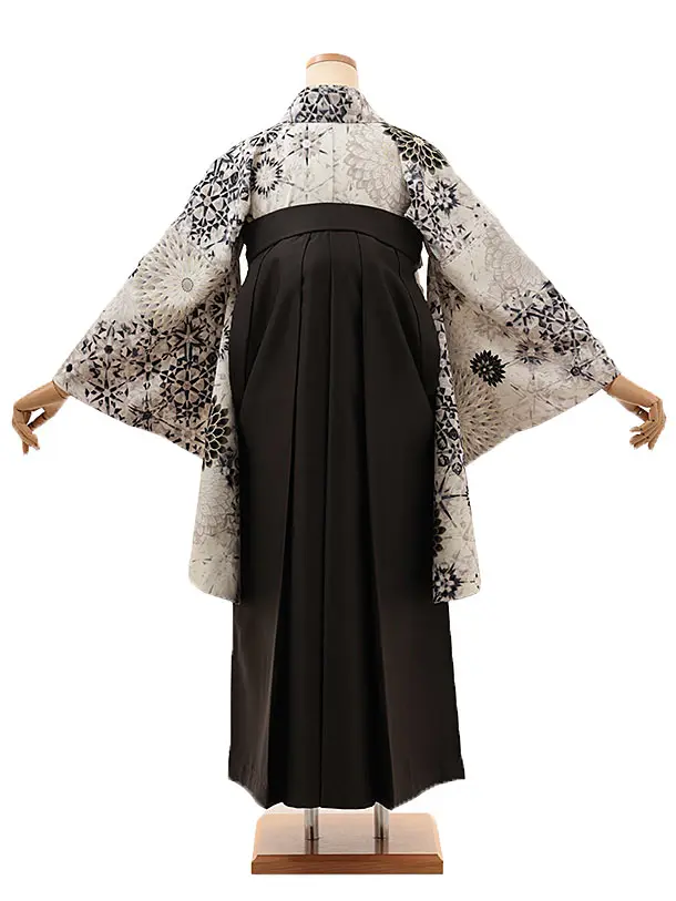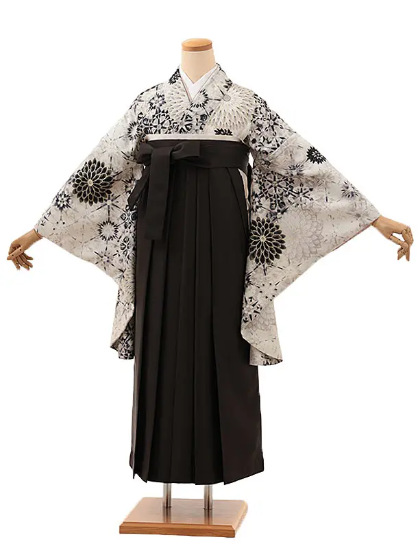 卒業式袴レンタルV162 アイボリー 花×チャコールグレー