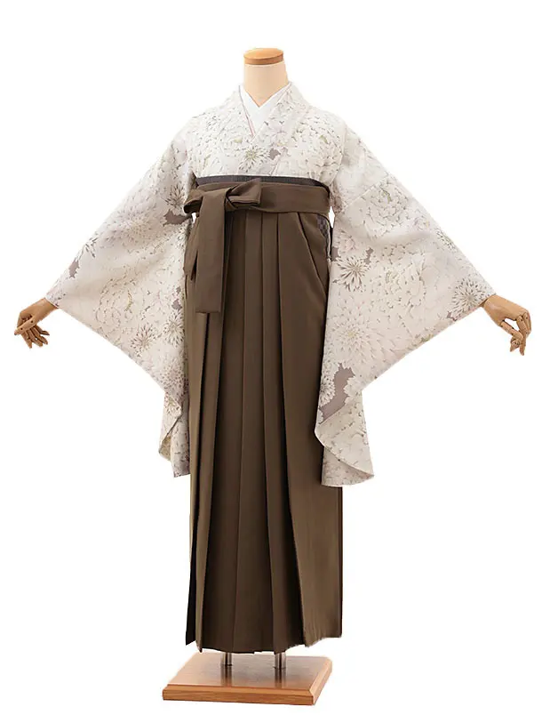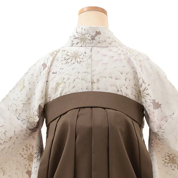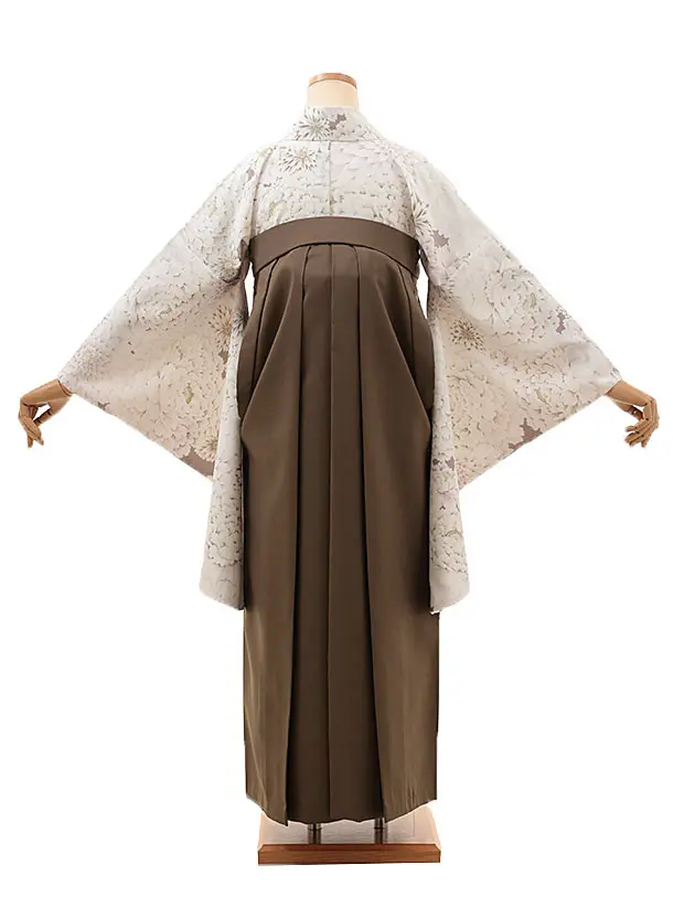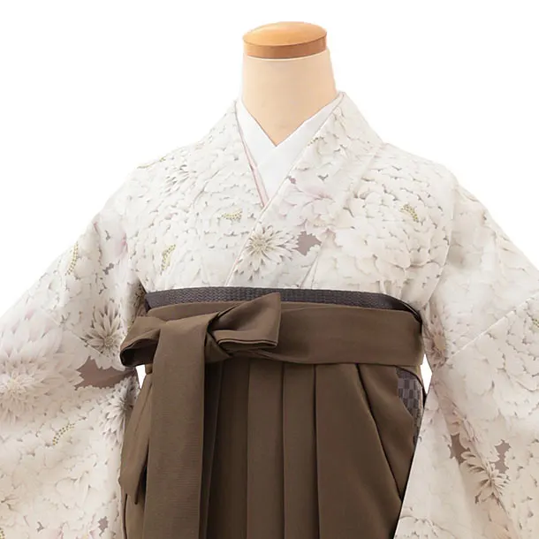 卒業式袴レンタルV163 アイボリー 花づくし×ブラウン