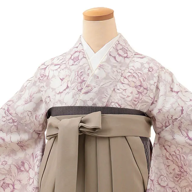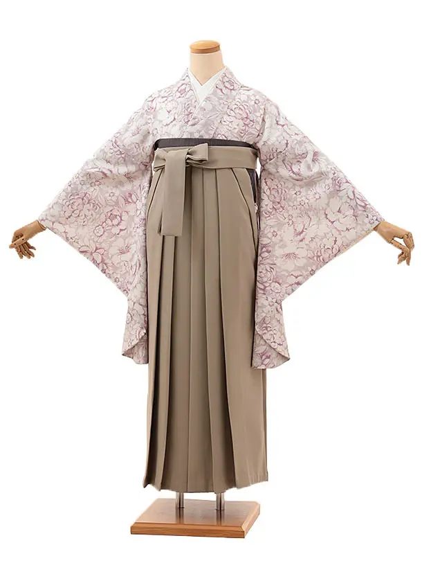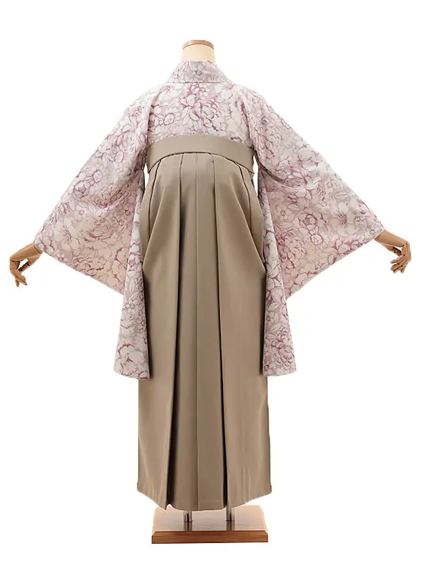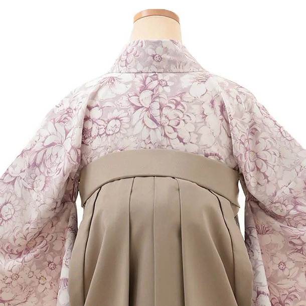 卒業式袴レンタルV165 薄パープル 花×ベージュ