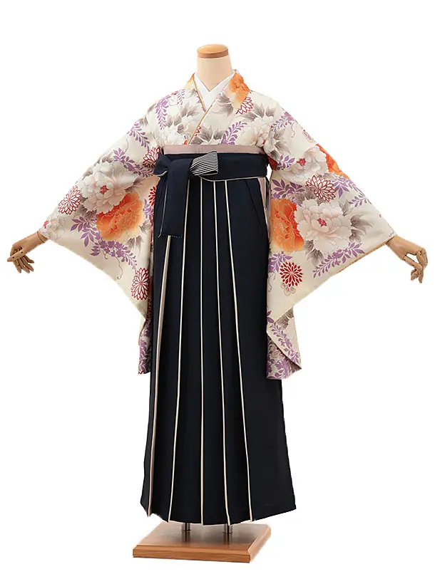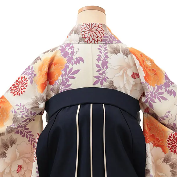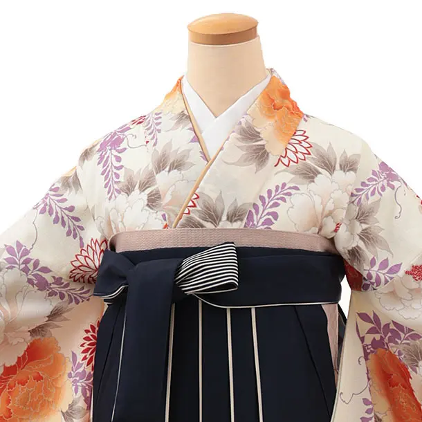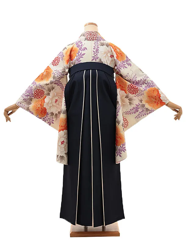 卒業式袴レンタルV166 クリーム地 藤ぼたん×紺アイボリー