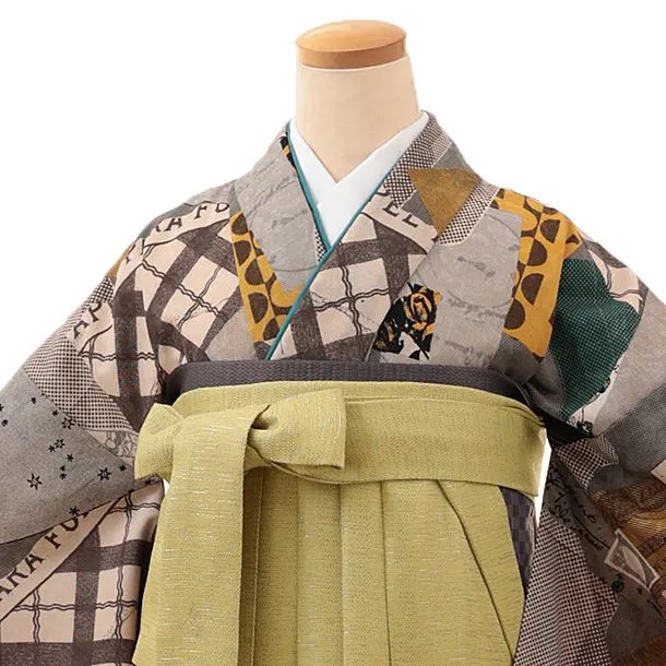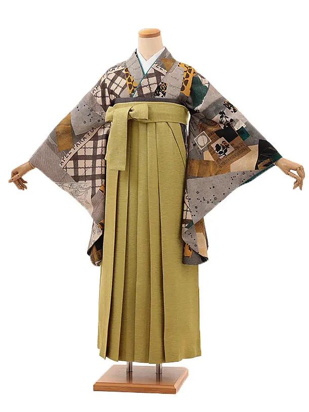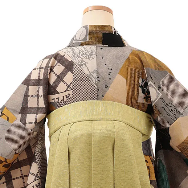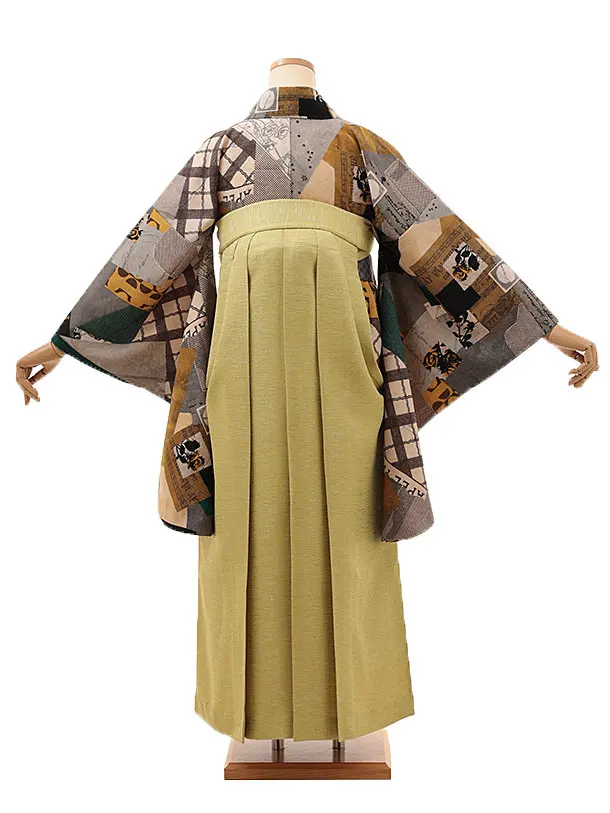 卒業式袴レンタルV174 モダンアンテナ 星間バラ黄×ヒワ