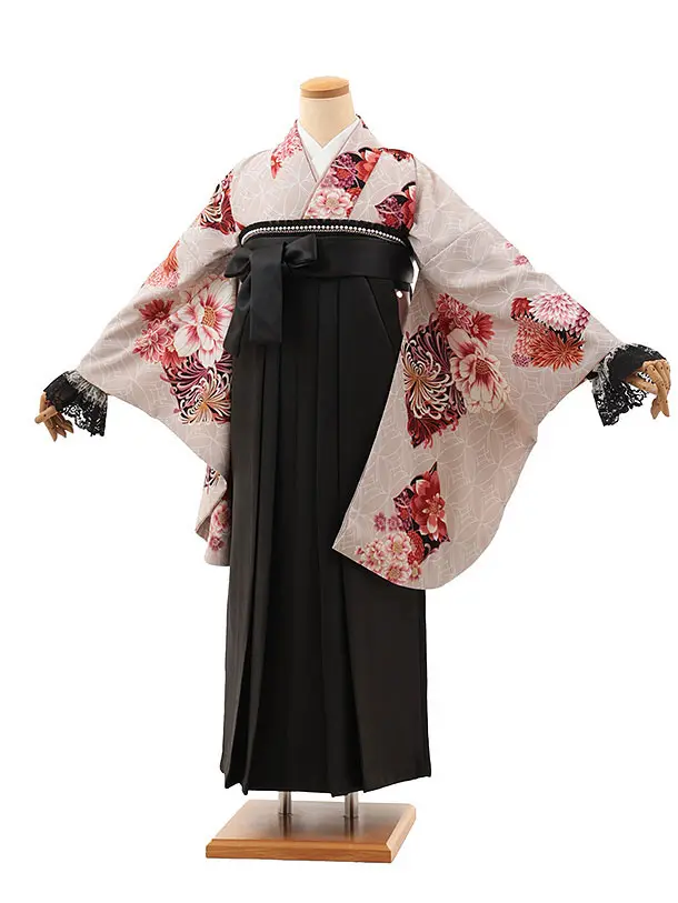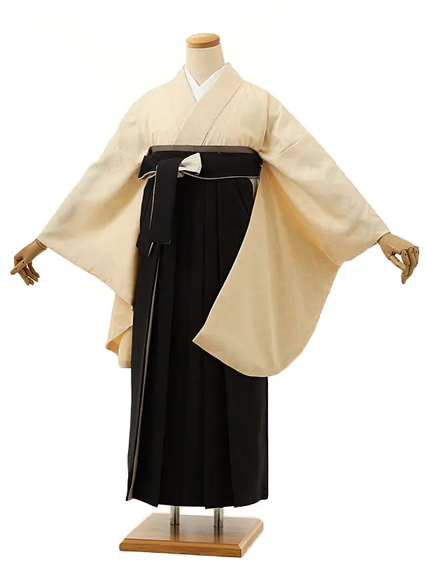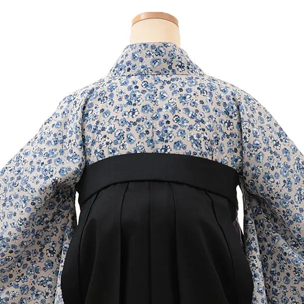 卒業式袴レンタルV177 ベージュ地ブルー 小花×黒
