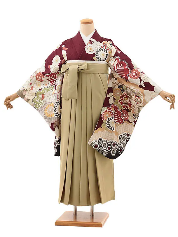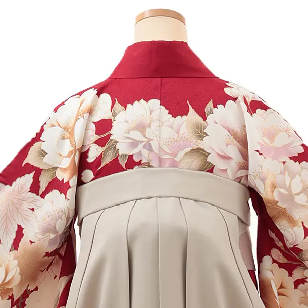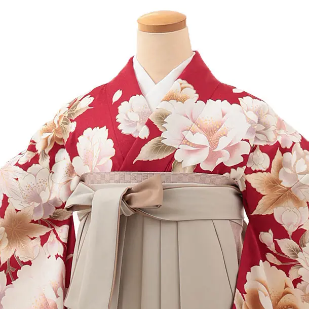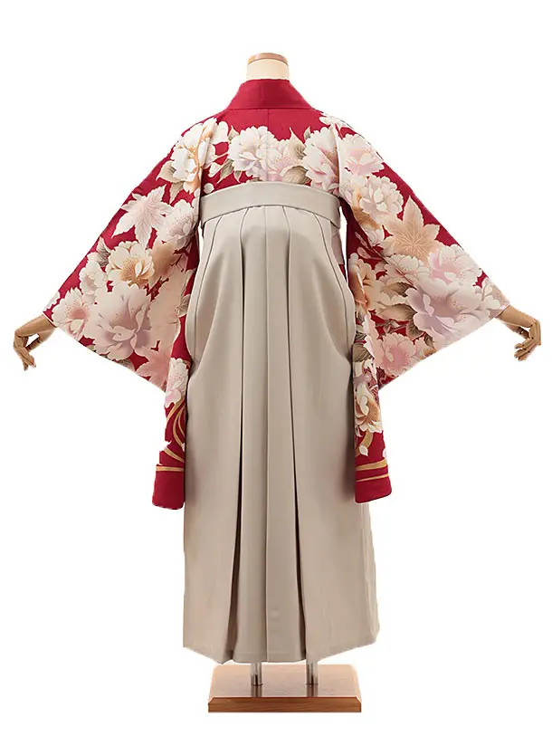 卒業式袴レンタルV186 赤地 花づくし×ベージュ