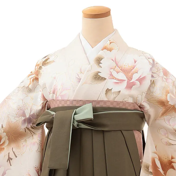 卒業式袴レンタルV188 白ピンク 花づくし×グリーン