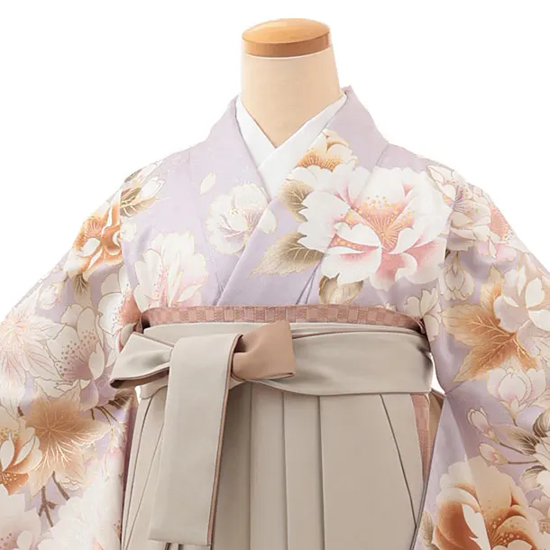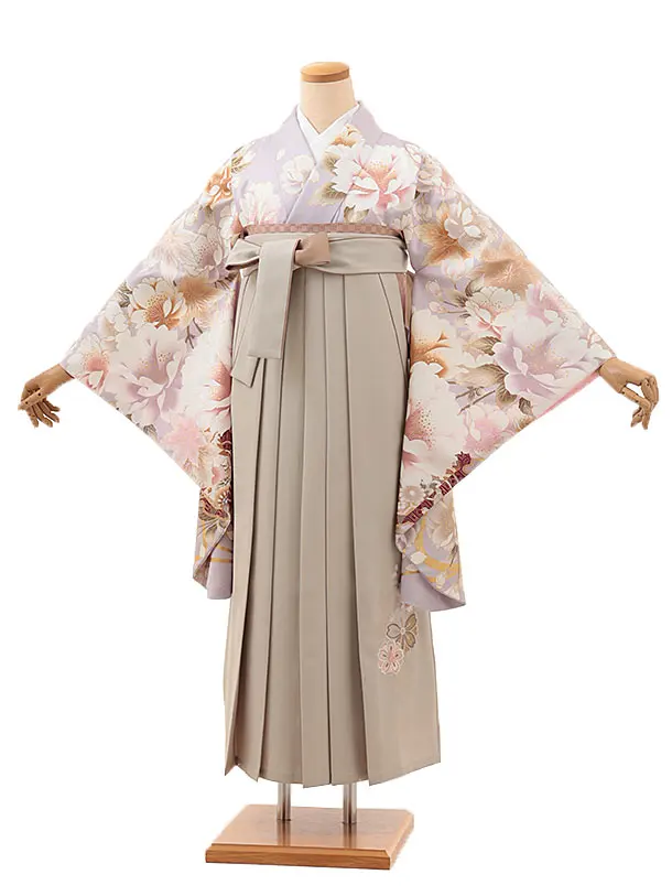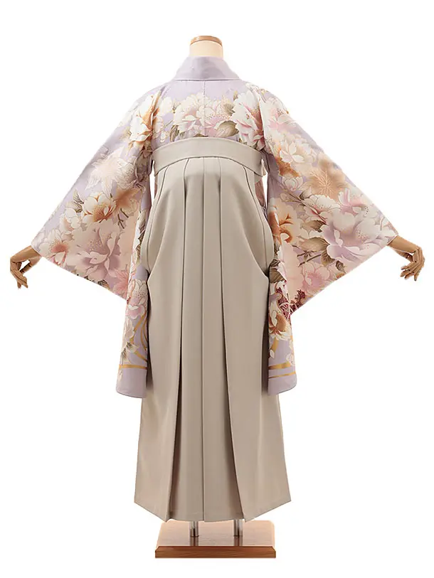 卒業式袴レンタルV201 ラベンダー 雪輪に花×ベージュ