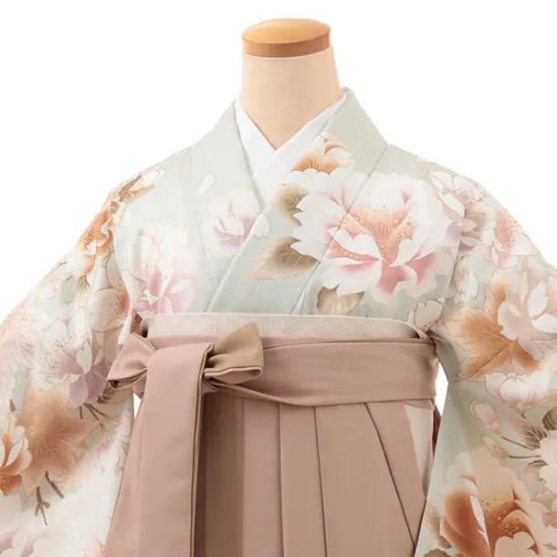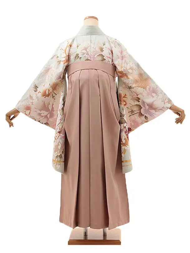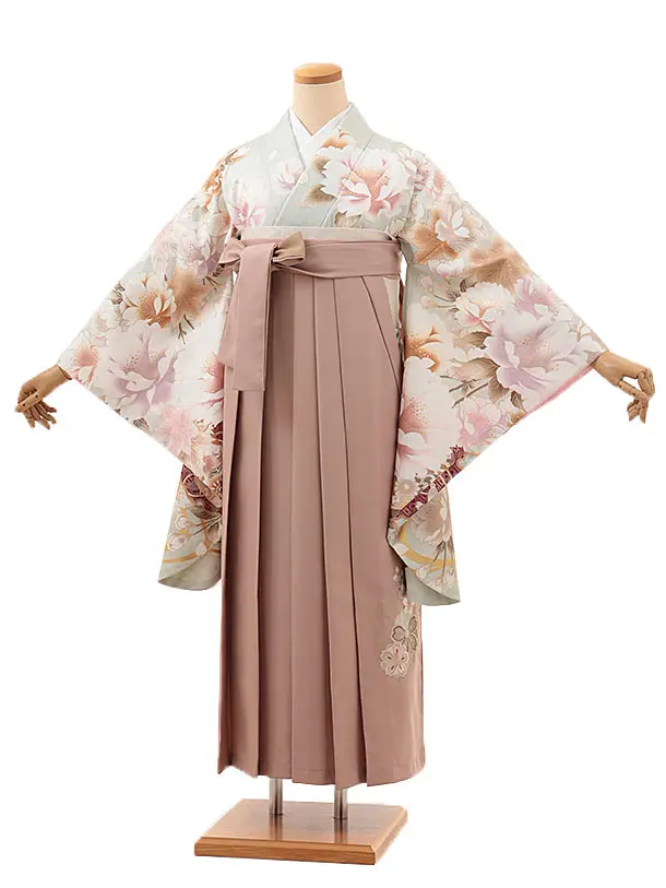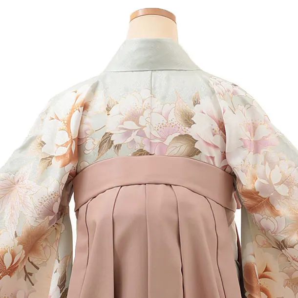 卒業式袴レンタルV204 ペールグリーン 雪輪に花×ピンク
