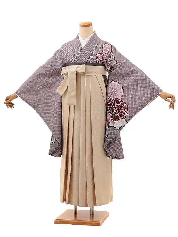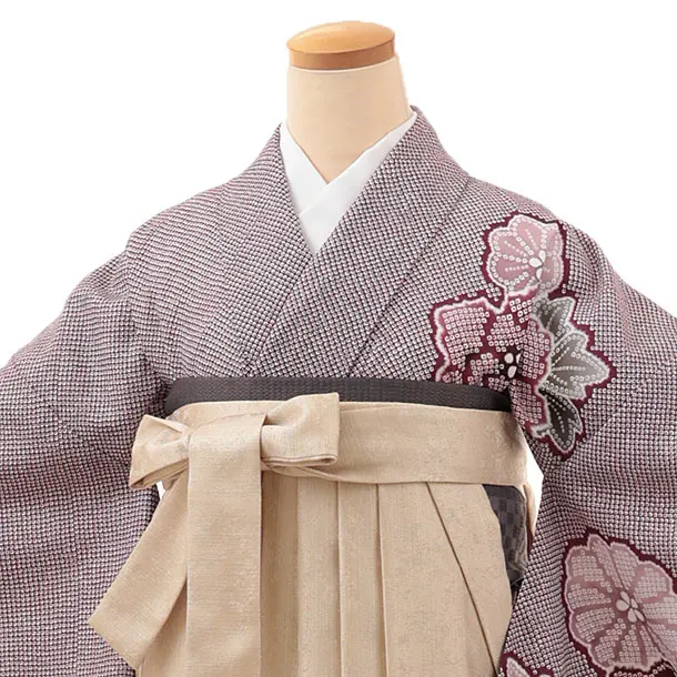 卒業式袴レンタルV210 赤紫 疋田柄 花×アイボリー