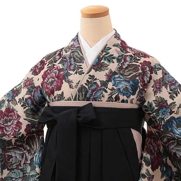 卒業式袴レンタルV216 ベージュ ゴブラン調×黒