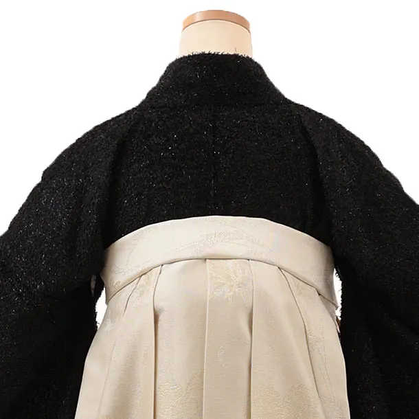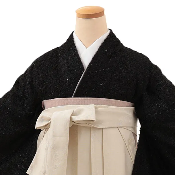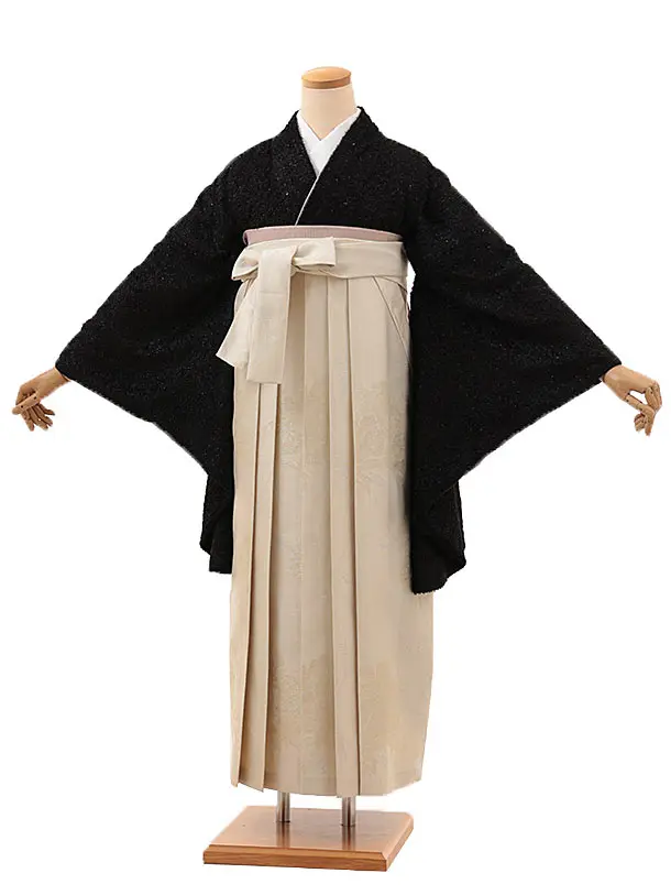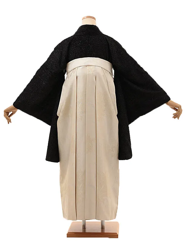 卒業式袴レンタルV221 ブラック シャギー×アイボリー花
