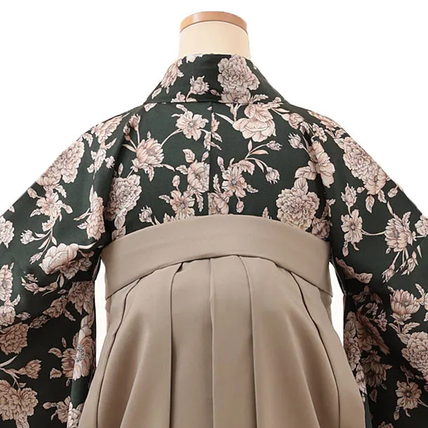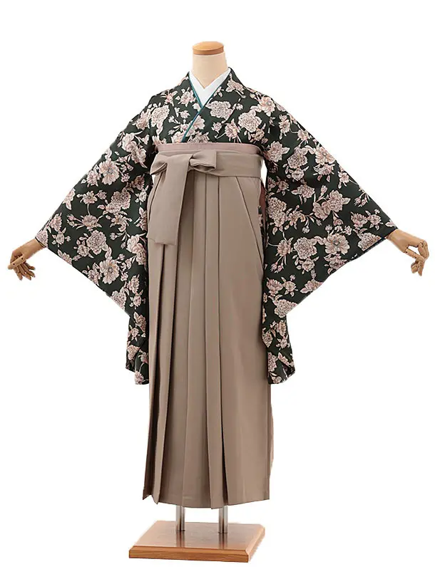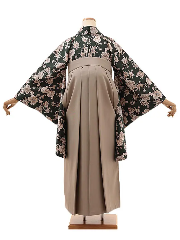 卒業式袴レンタルV223 グリーン 花×ベージュ