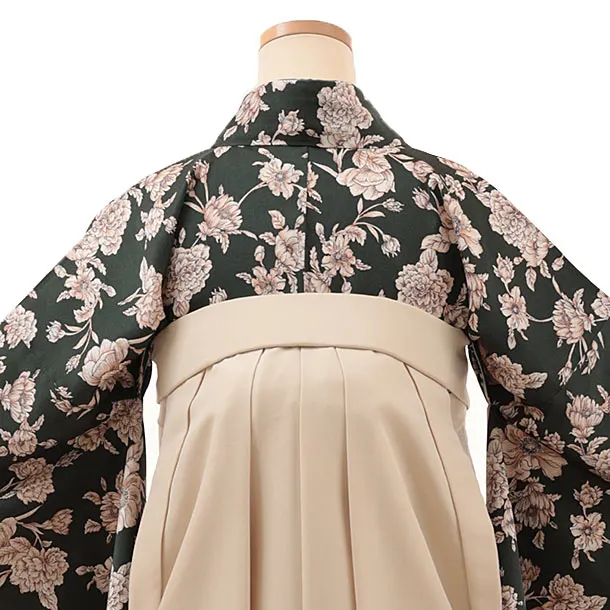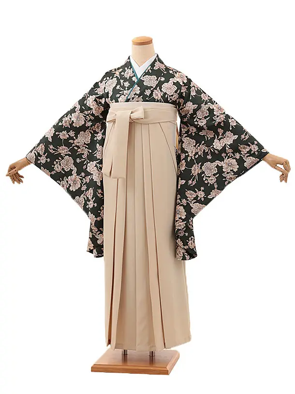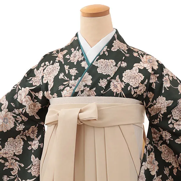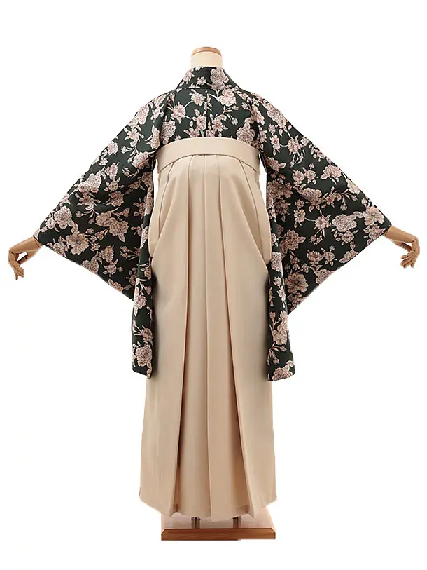 卒業式袴レンタルV225 グリーン 花×アイボリー