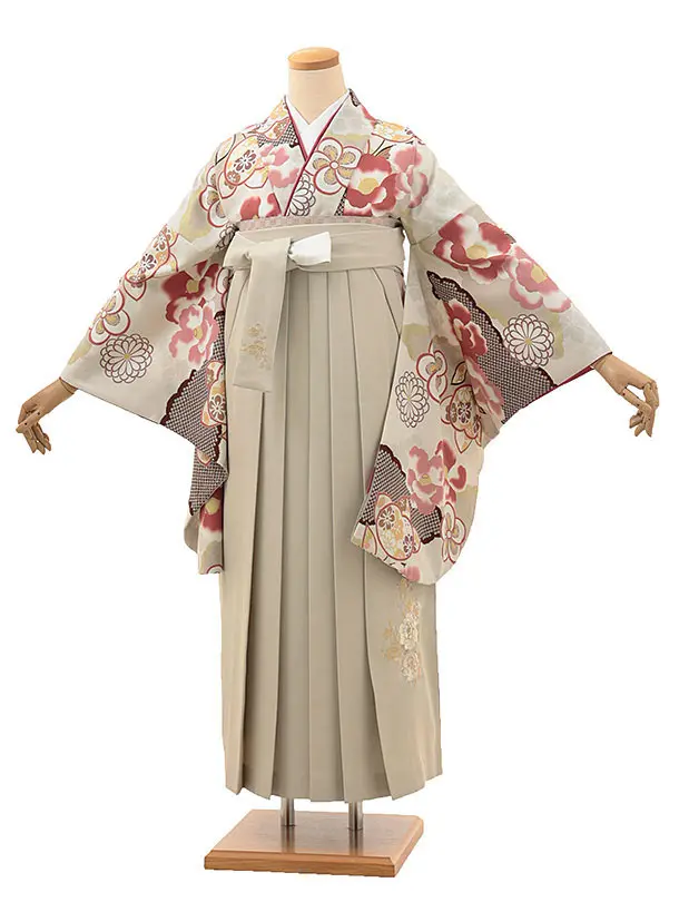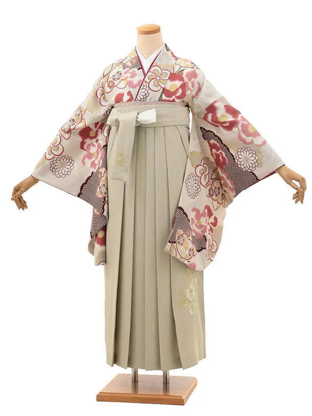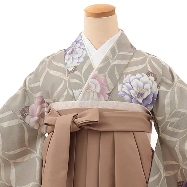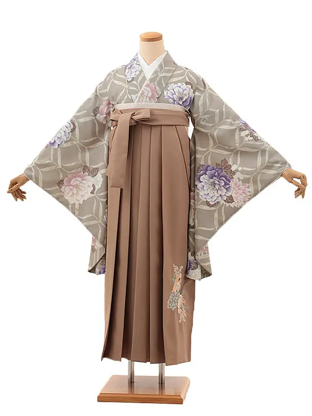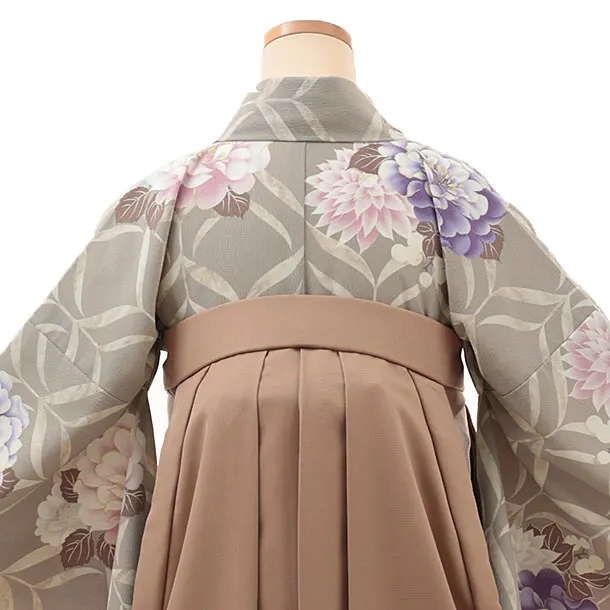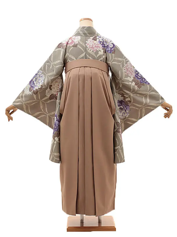 卒業式袴レンタルV236 グレージュ 花×モカベージュ
