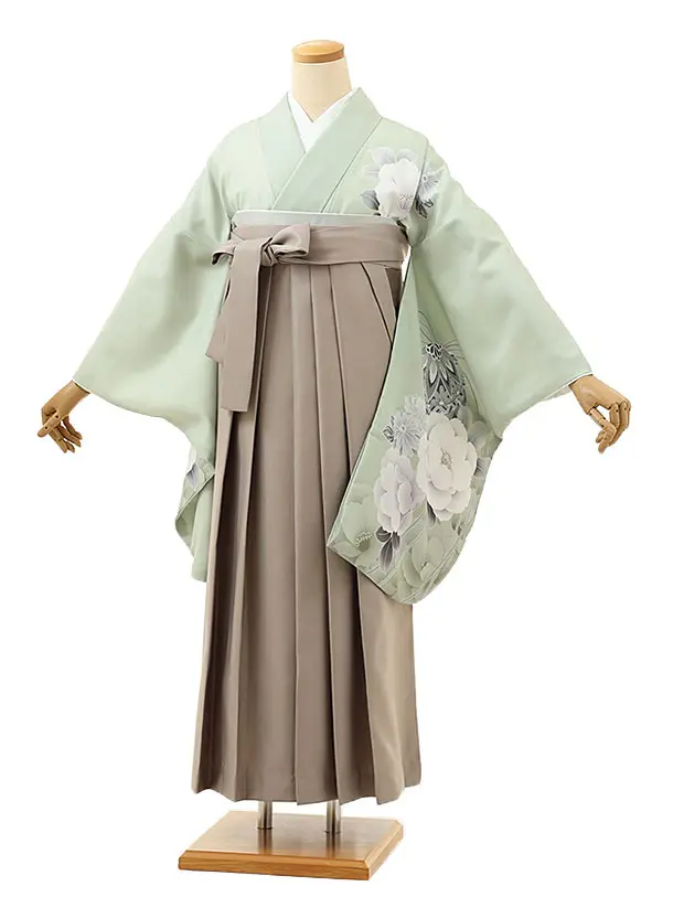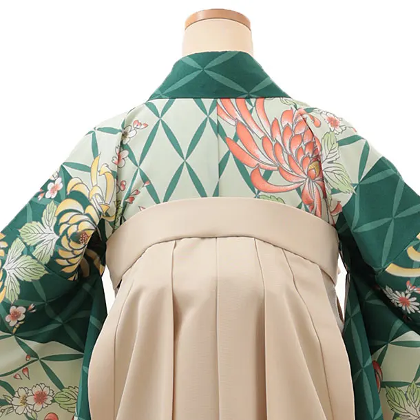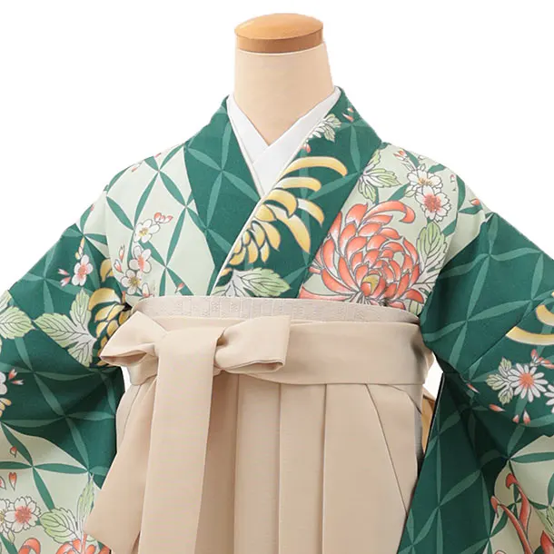 卒業式袴レンタルV261 グリーン染め分け 花×アイボリー