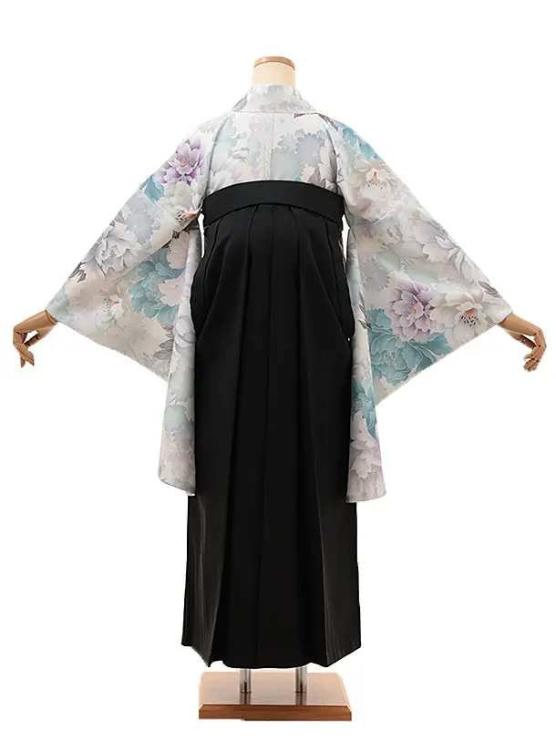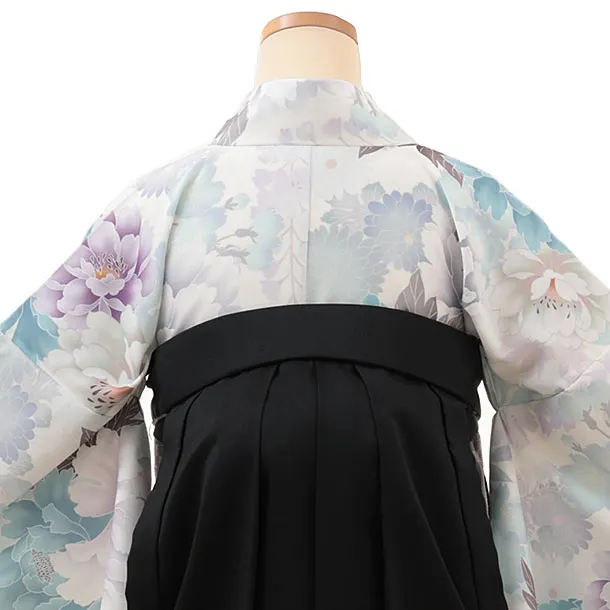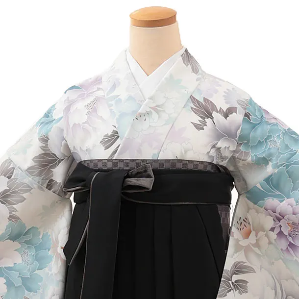 卒業式袴レンタルV268 白地 ぼたん×黒