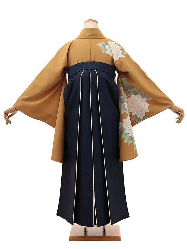 卒業式袴レンタルV280 からし 花×紺アイボリー