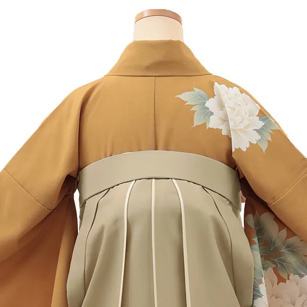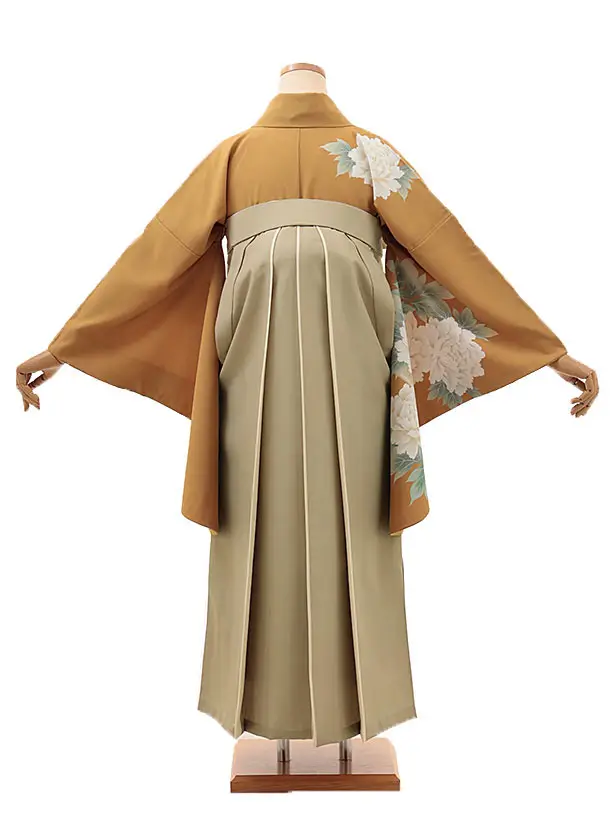 卒業式袴レンタルV283 からし 花×ベージュアイボリー