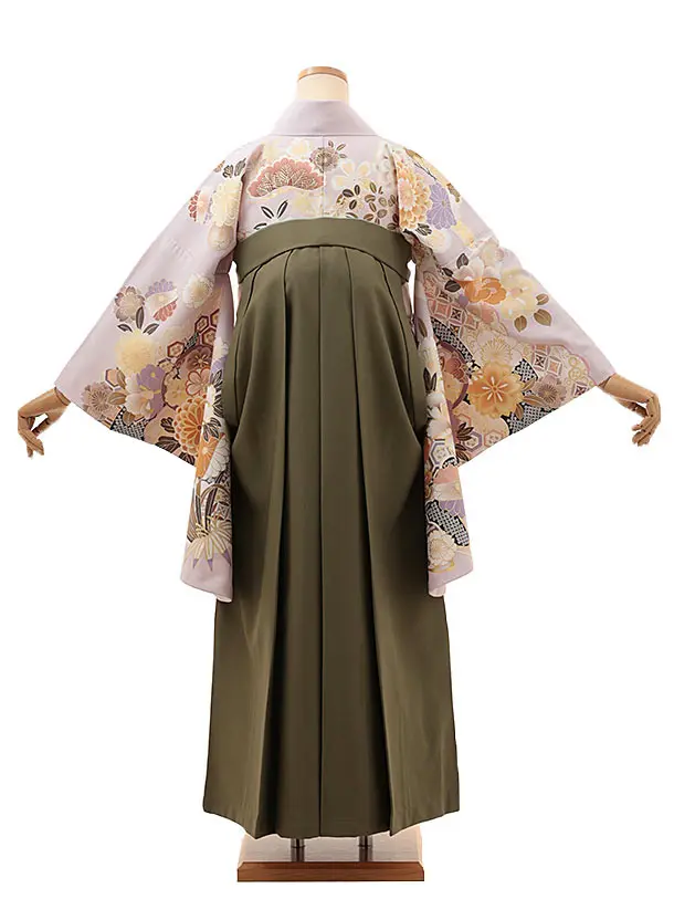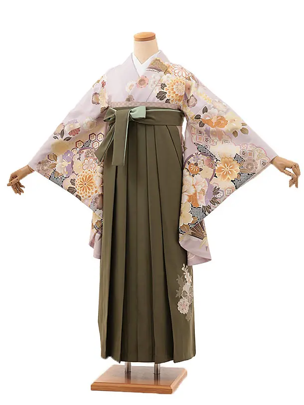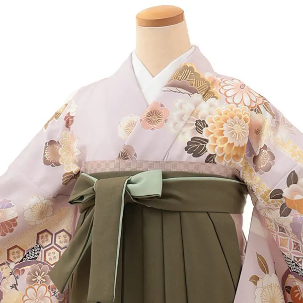 卒業式袴レンタルV284 藤色 花づくし×グリーン