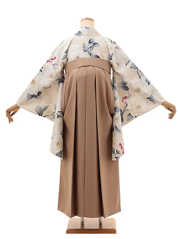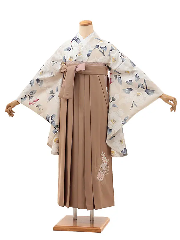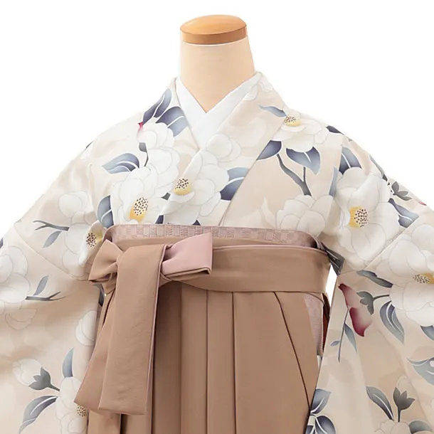 卒業式袴レンタルV285 薄ベージュ 八重椿×モカベージュ