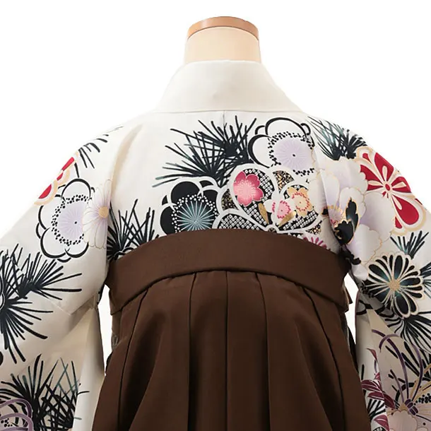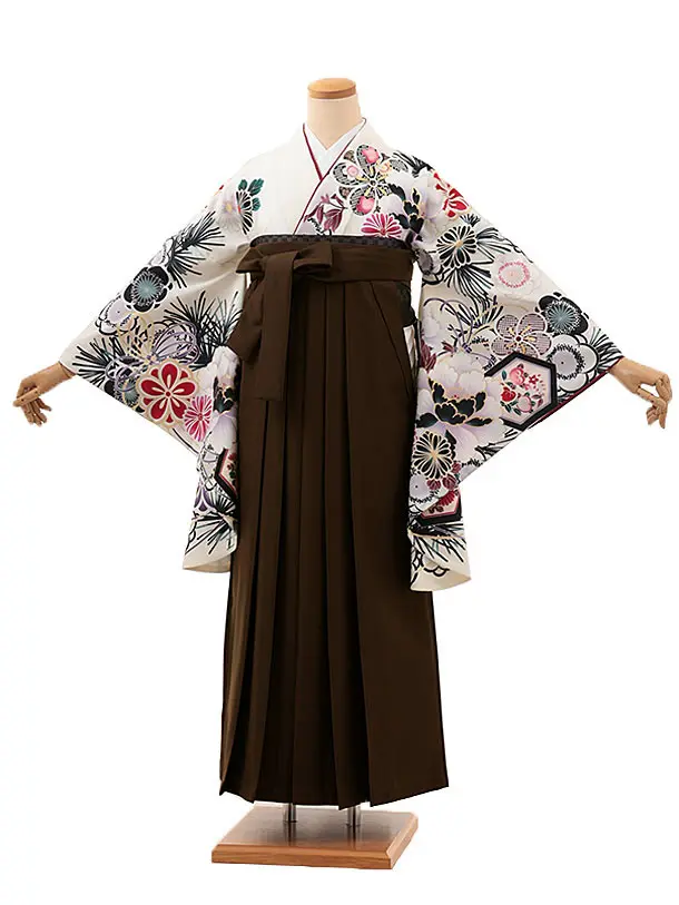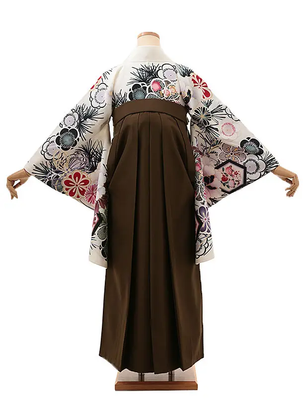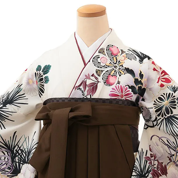 卒業式袴レンタルV291 オフホワイト 花づくし×ブラウン