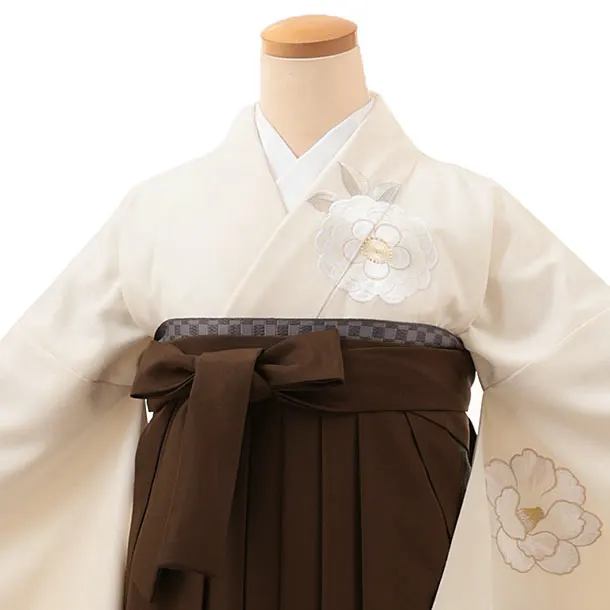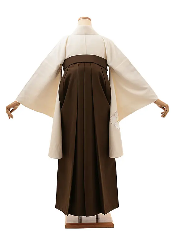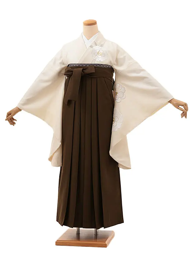 卒業式袴レンタルV292 クリーム 刺繍 花×ブラウン