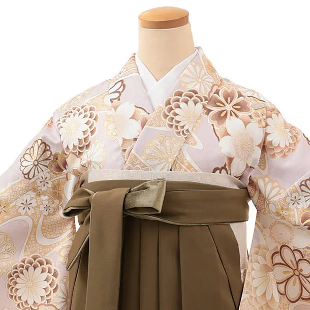 卒業式袴レンタルV295 藤色 流水菊×ブラウン