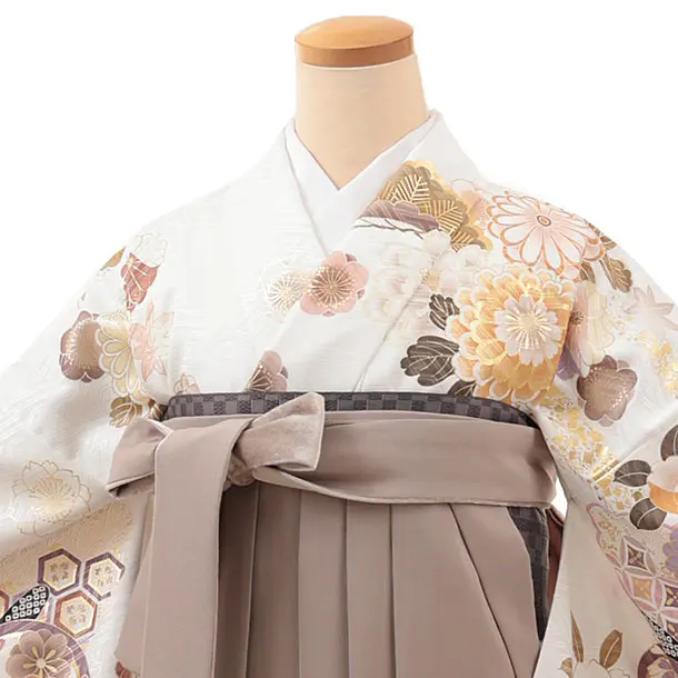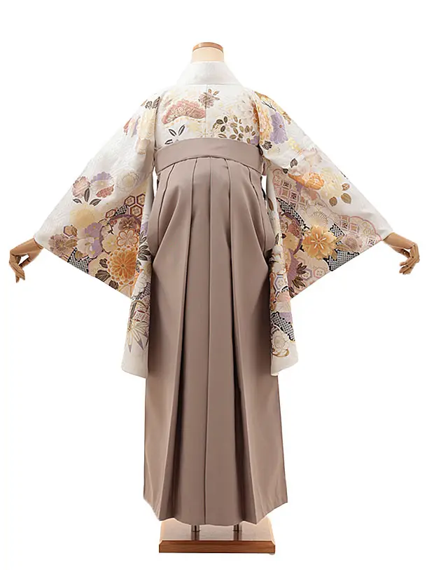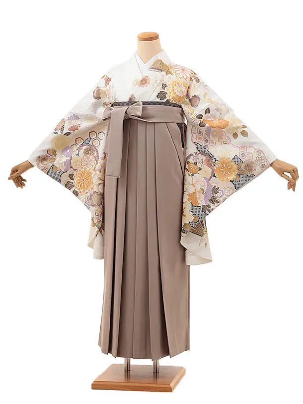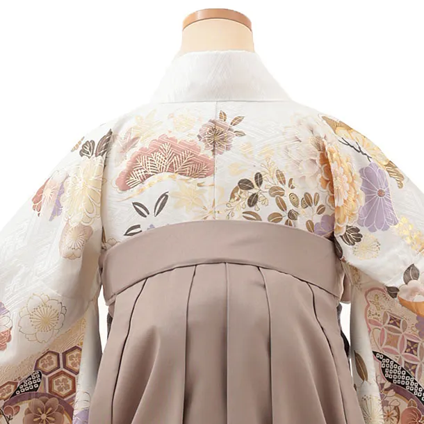 卒業式袴レンタルV301 白地 花づくし×ベージュ