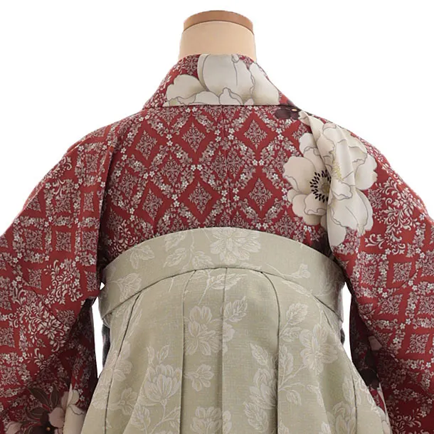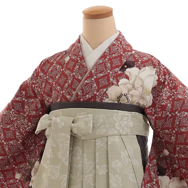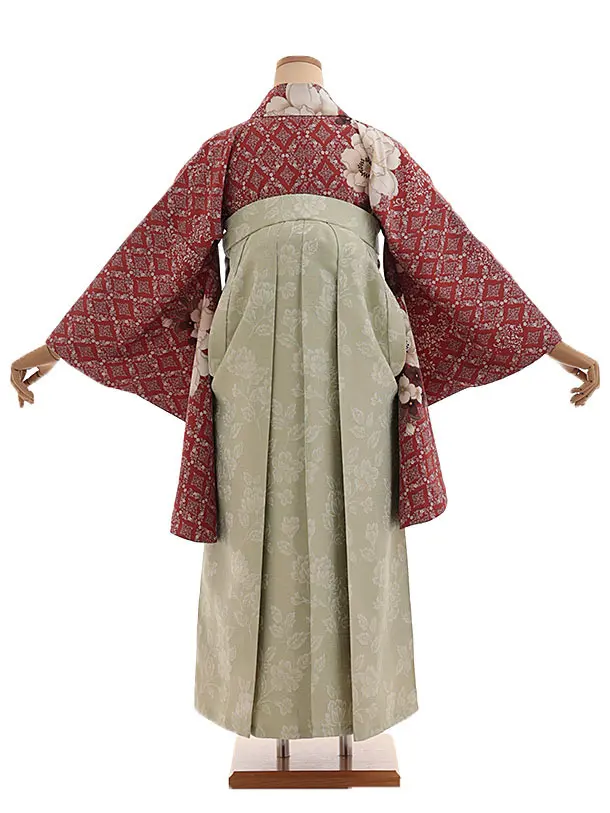 卒業式袴レンタルV307 ボルドー ダマスク花×薄グリーン花