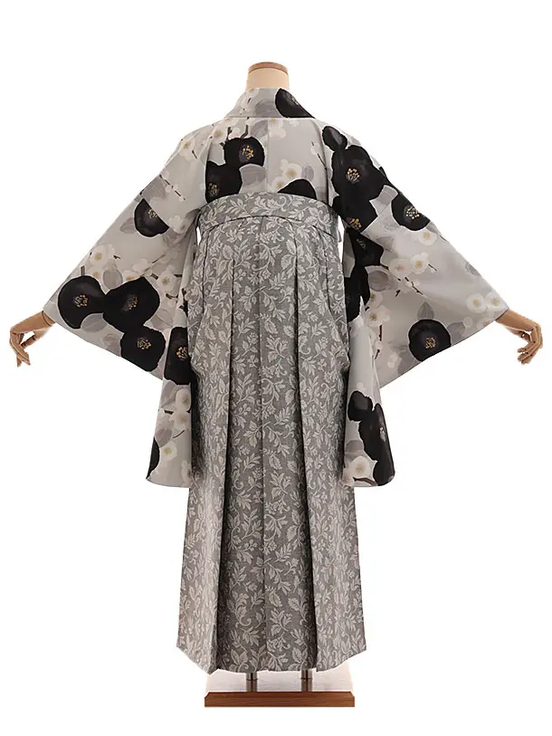 卒業式袴レンタルV311 グレー 梅椿×グレー小花