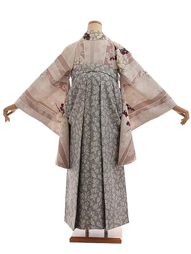 卒業式袴レンタルV312 ピンクベージュ 花×グレー小花