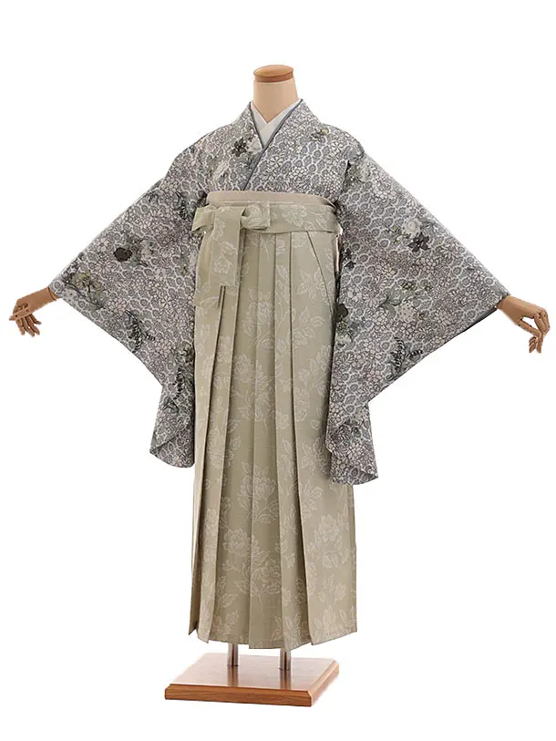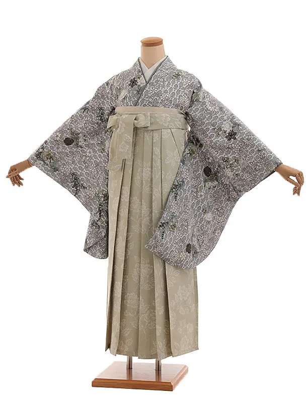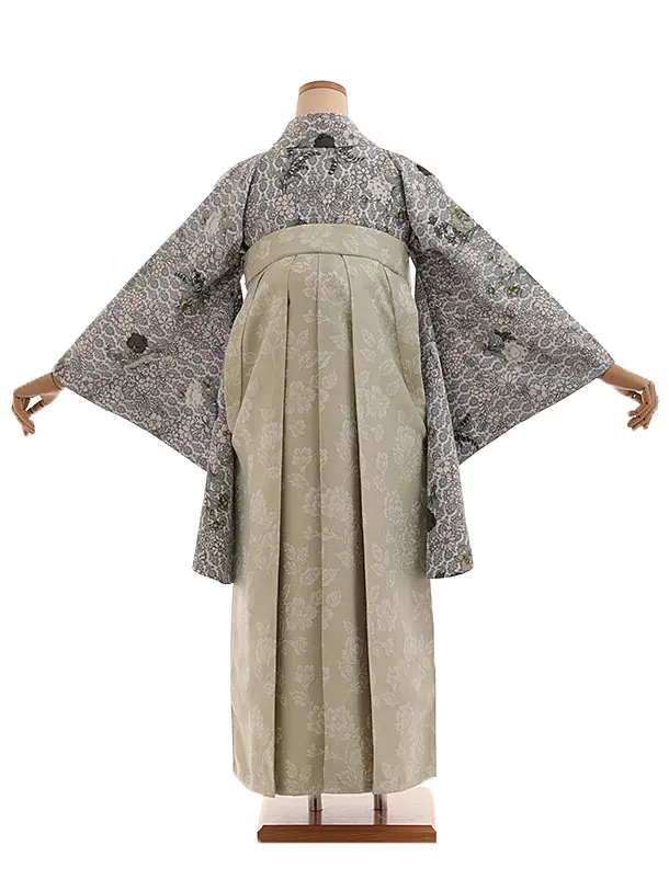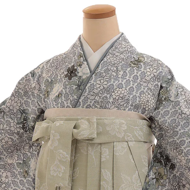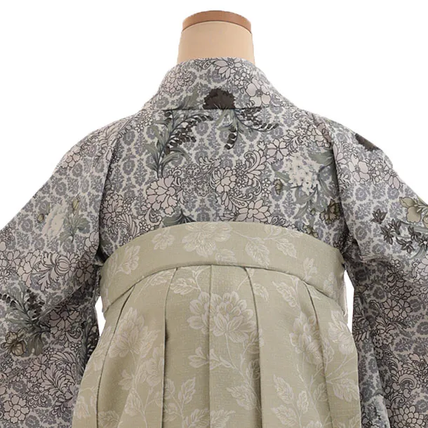 卒業式袴レンタルV320 白グレー 小花×ペールグリーン