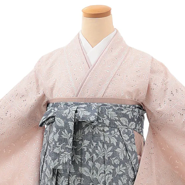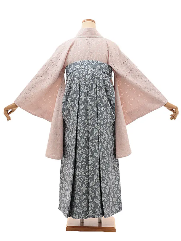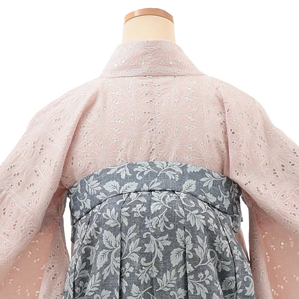 卒業式袴レンタルV326 ピンクレース×ブルー花