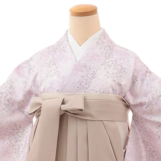 卒業式袴レンタルV341 薄パープル かすみ草×ベージュ