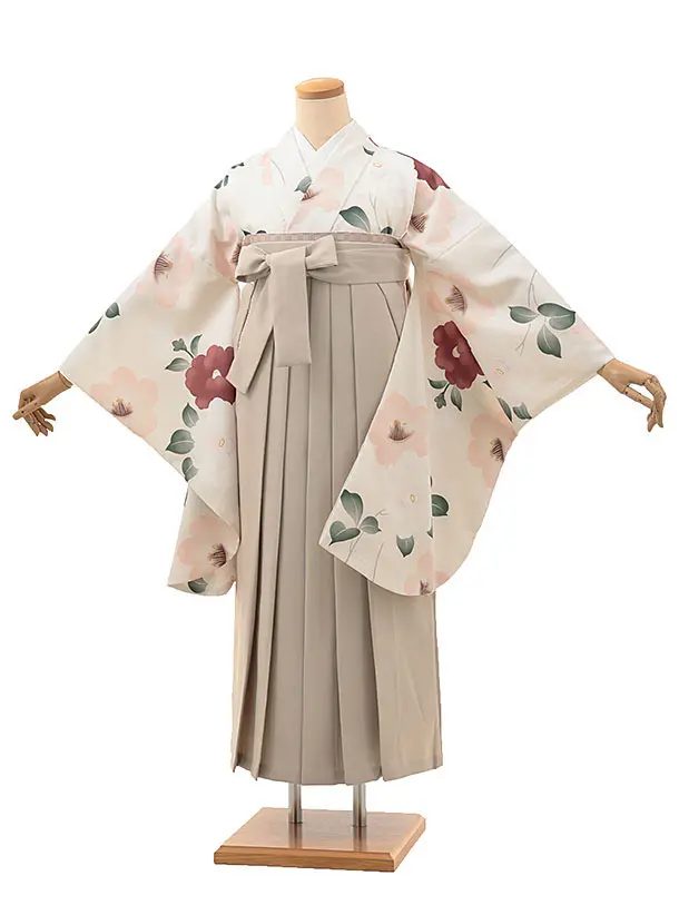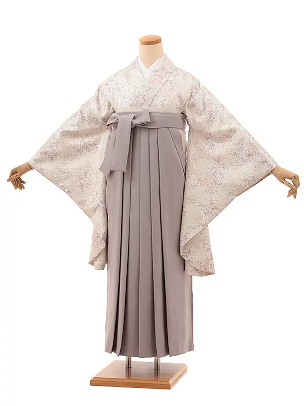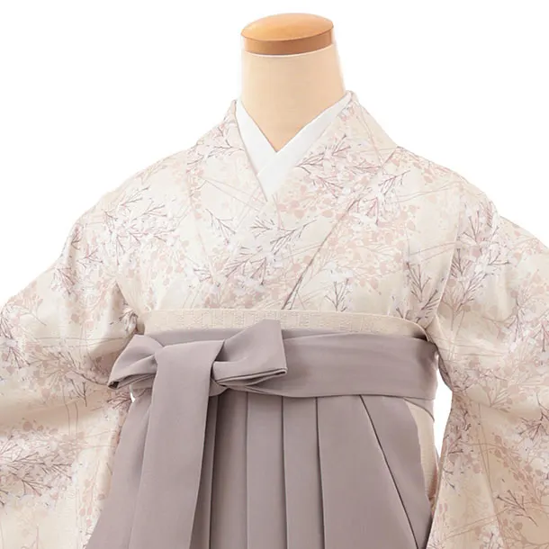 卒業式袴レンタルV342 クリーム白 かすみ草×グレージュ