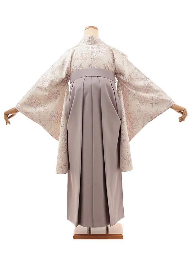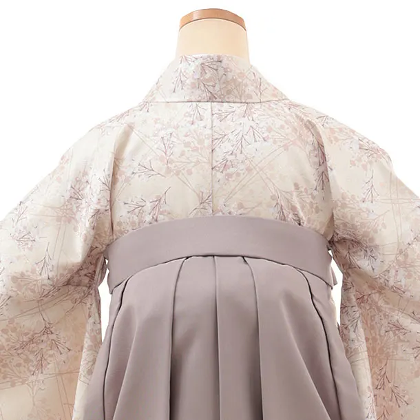 卒業式袴レンタルV343 クリーム白 かすみ草×グレージュ